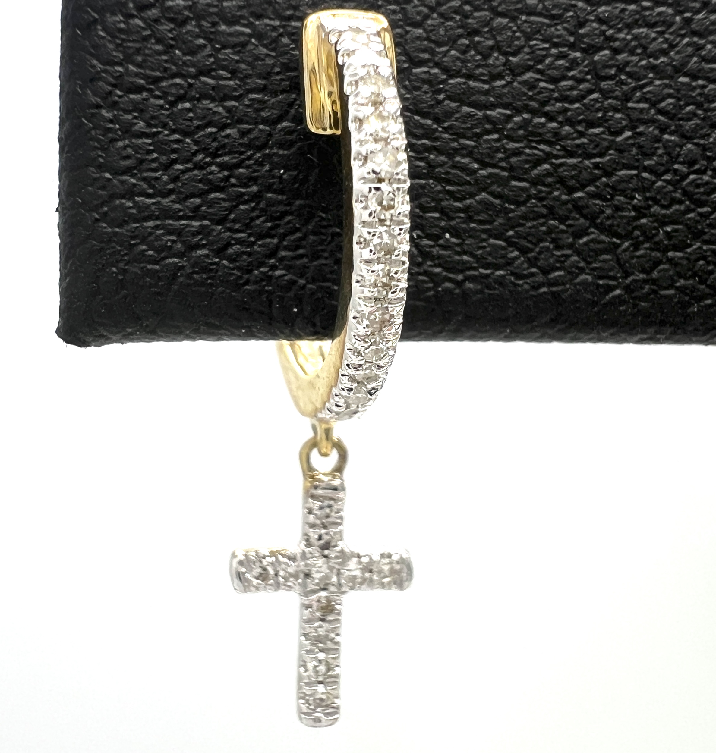 10 k yellow gold 1/6ctw Diamond Cross Dangle Earrings