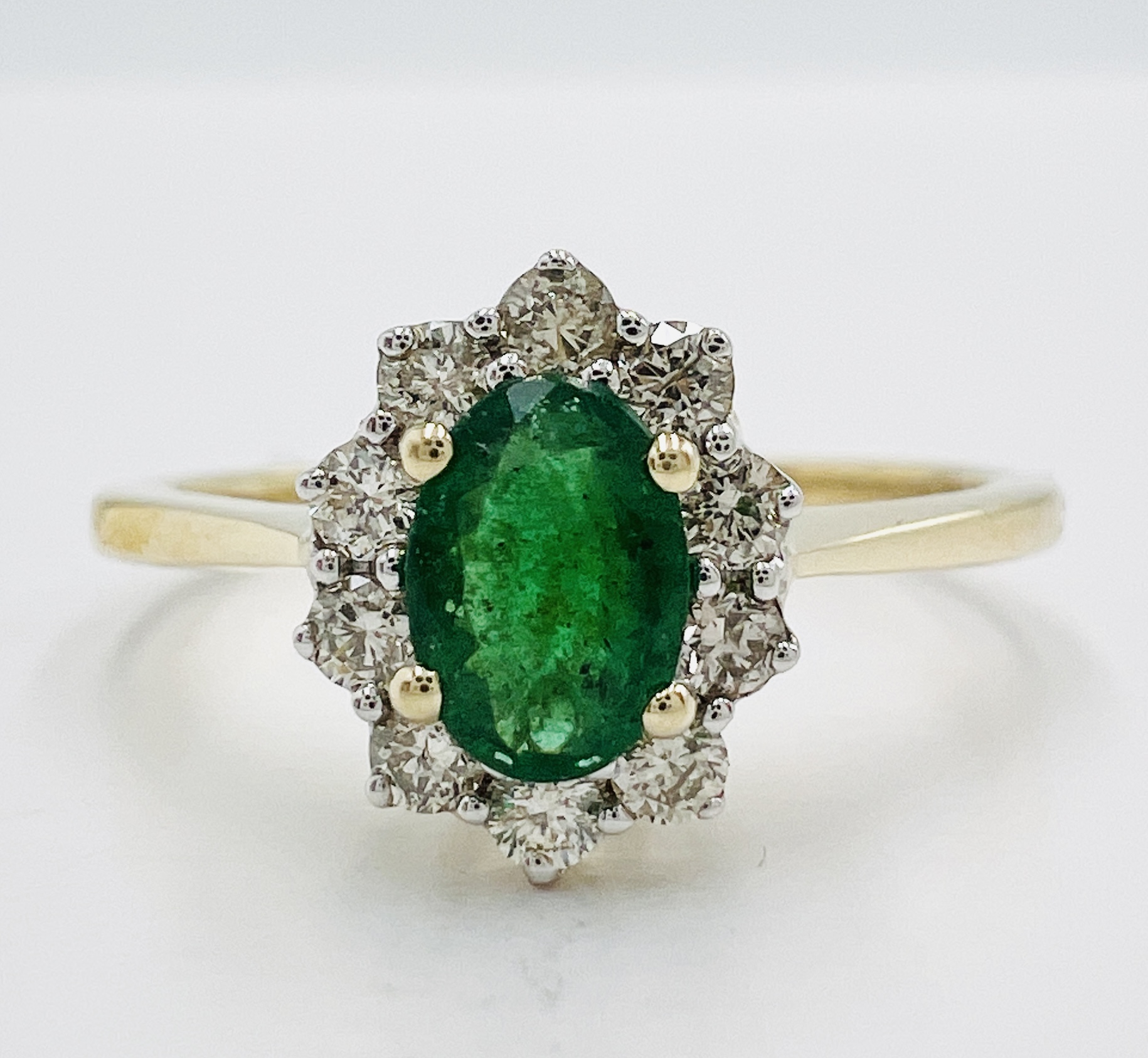 10KY Oval Emerald A grade dark green with 0.25ctw Natural Diamond Ring