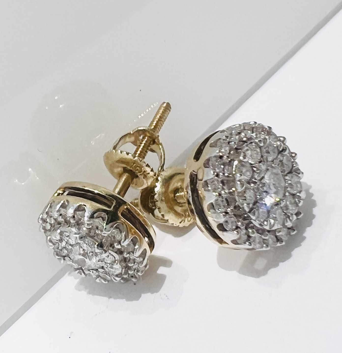 10KY 0.50ctw Double Halo Dia Cluster Stud Screwback Earrings