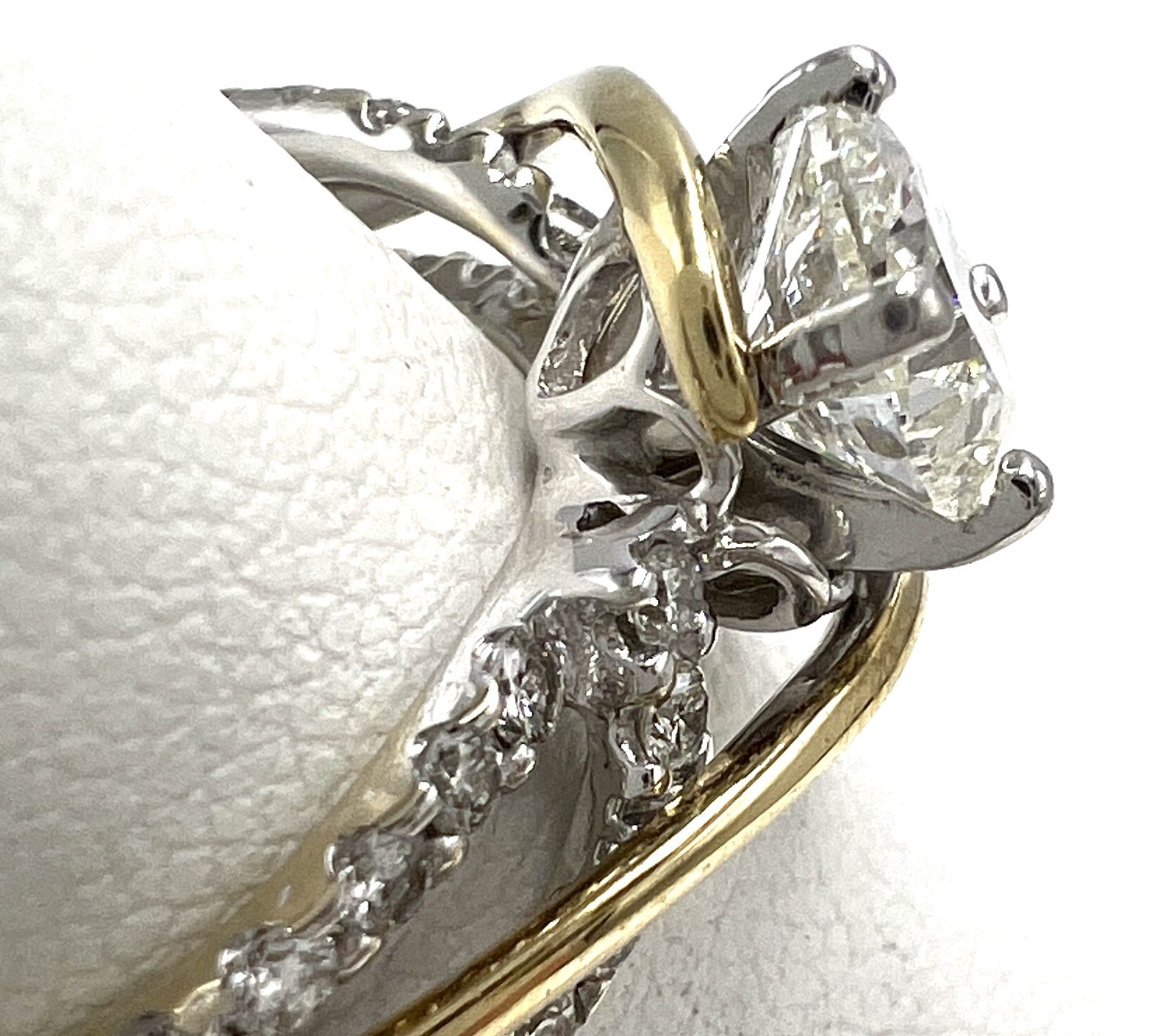 14kt Two Tone Yellow and White Gold Custom Natural Diamonds Swirl Ring 1ct H color SI2 clarity 0.42ct Split Shank w/ Bypass Ring