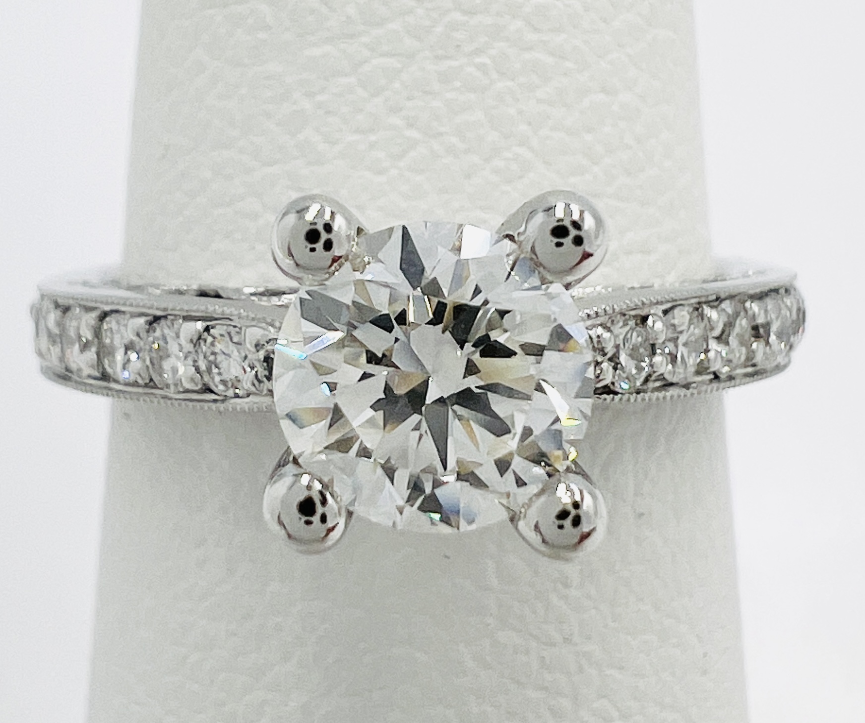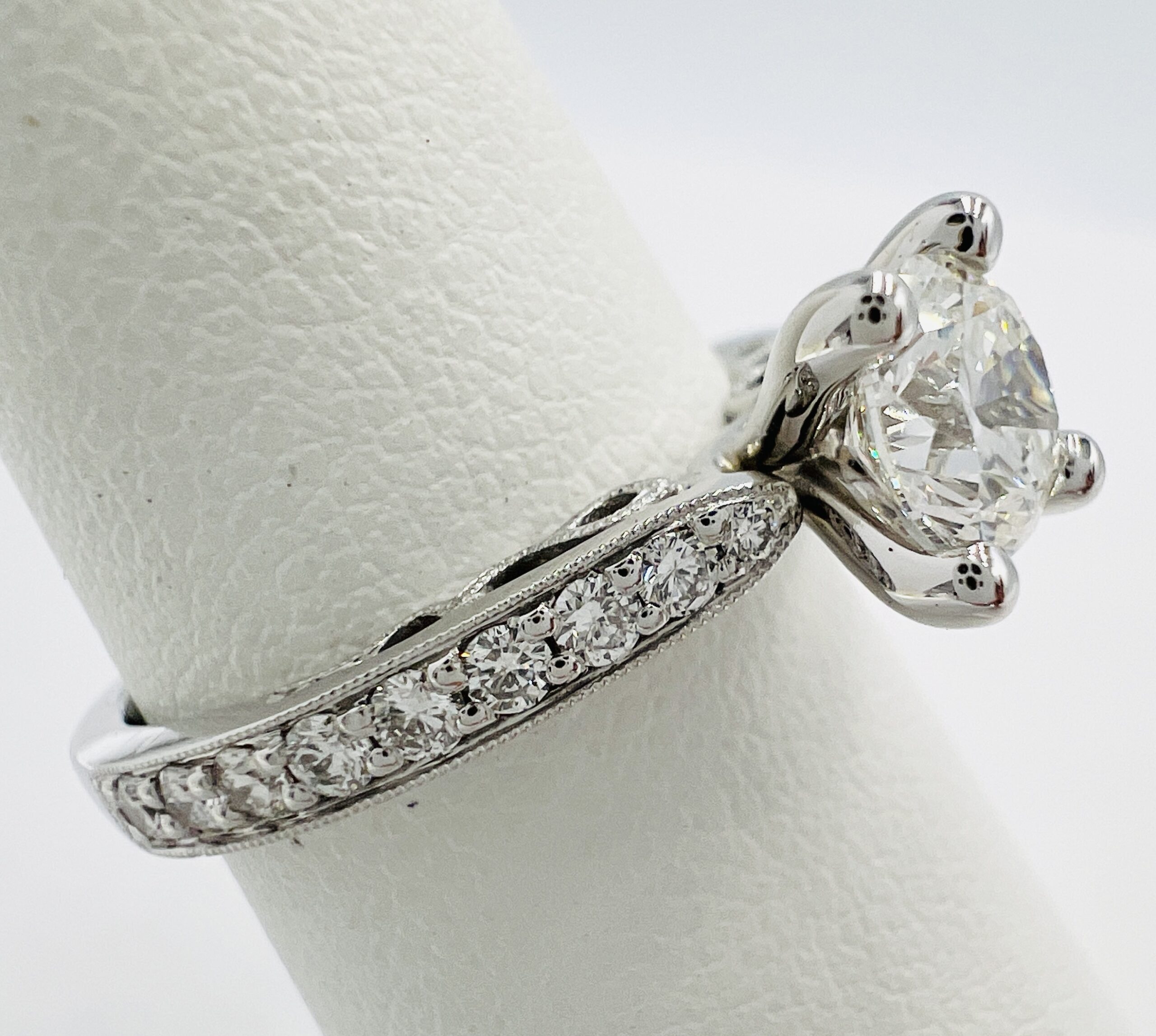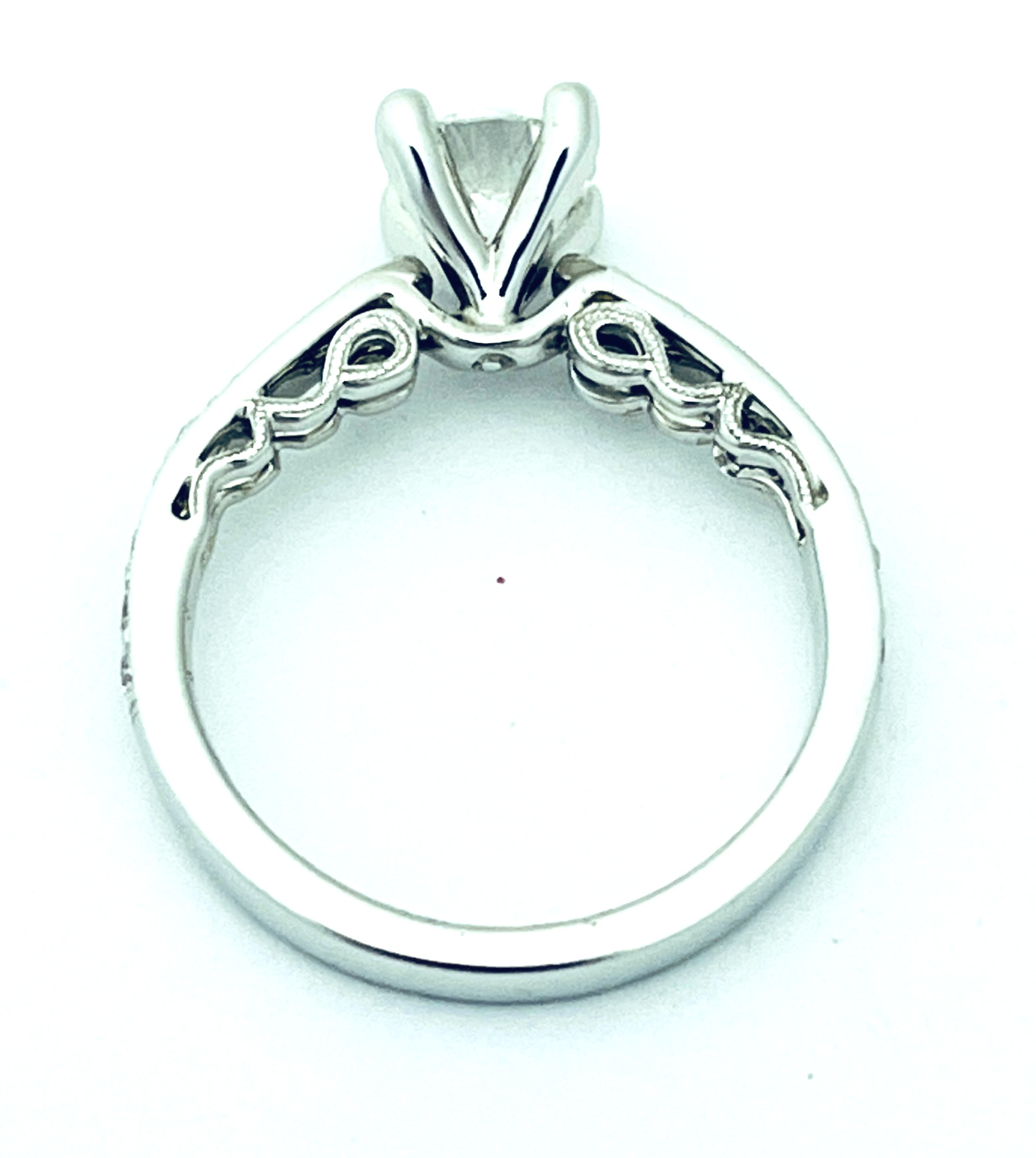 14k White Gold 0.81ct Lab Grown Diamond center and Natural Diamonds 0.34ctw Accented Shank, Decorative Side Gallery Vintage Look