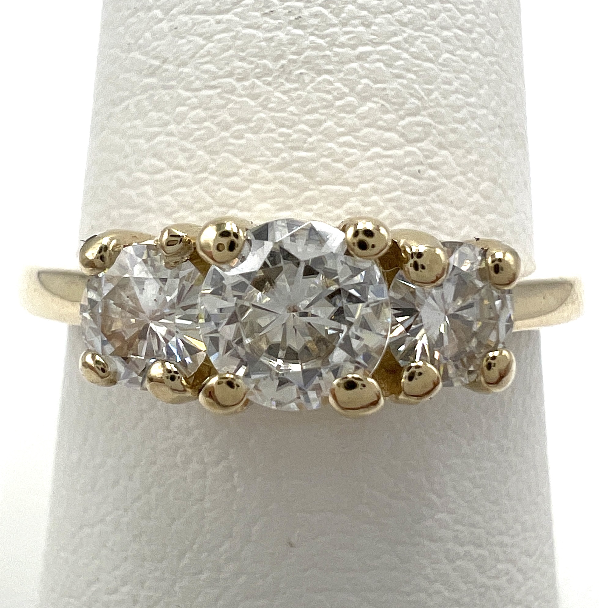 14K Yellow Gold 0.85ctw (0.41ct Center, 0.22ct Sides) Moissanite 3 Stone Engagement Ring