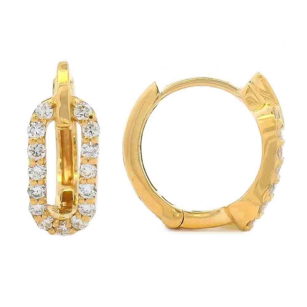 14K Yellow Gold PaperClip Link 0.30ctw Diamond Accented Huggie Earrings