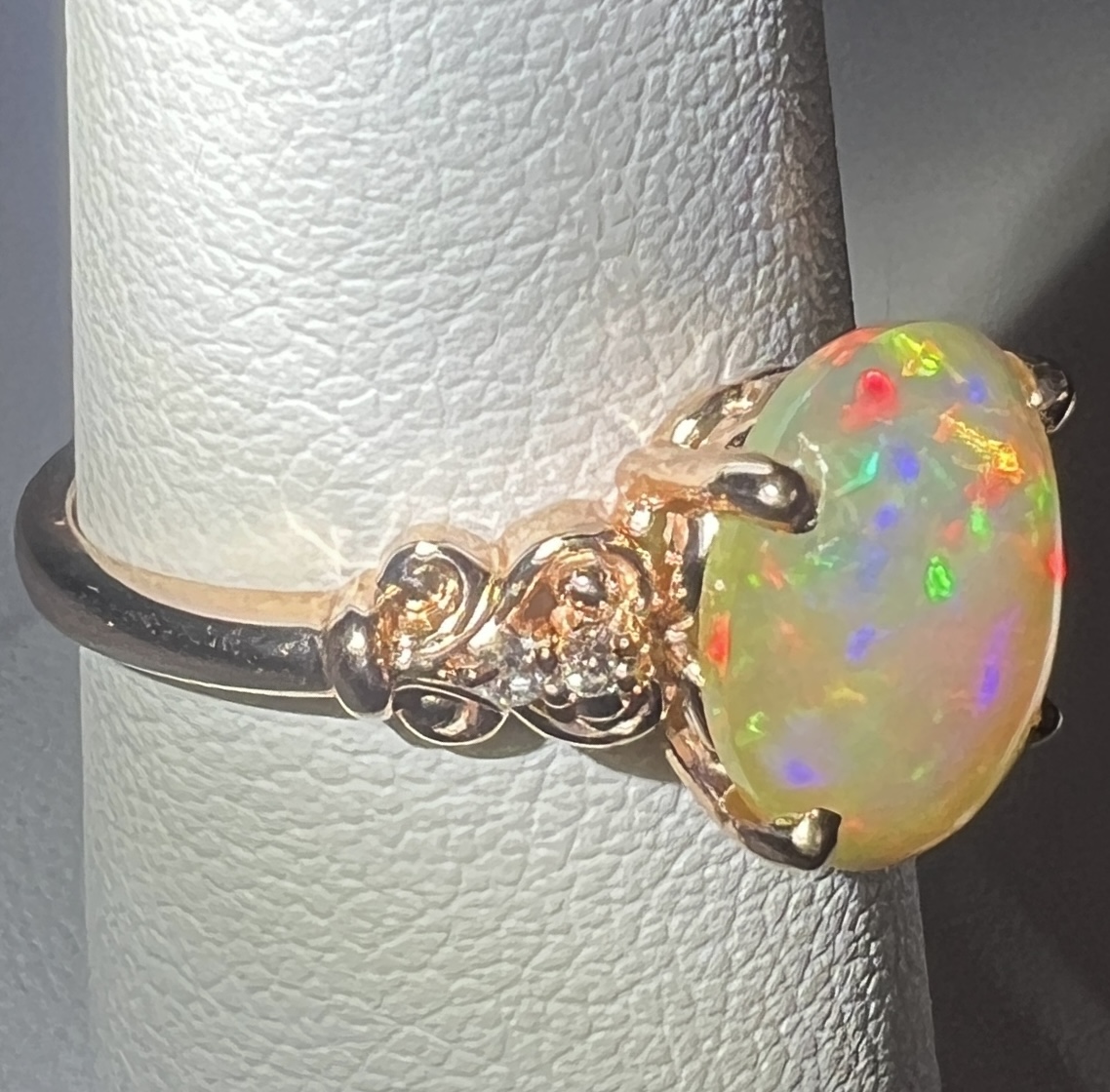 Home / Gender / Womens / 14KR 2ct Ethiopian Opal/Diamond Accents Fashion Ring Size 7 14KR 2ct Ethiopian Opal/Diamond Accents Fashion Ring Size 7$2,000.00 14KR 2ct Ethiopian Opal/Diamond Accents Fashion Ring Size 7 quantity Add to cart SKU: 001-200-00805 Categories: Colored Stone Rings - Women's, Gender, Rings, Womens Related products 18kt white gold “crown” ring semi mount $3,500.00 Select options Ladies 14kt white gold 0.50 ct diamond band $3,000.00 Select options SS Gold Plated Simulated Emerald and CZ Band Size 5 $70.00 Select options Sterling Silver Multi-Colored Sapphire and Diamond Ring $810.00 Select options