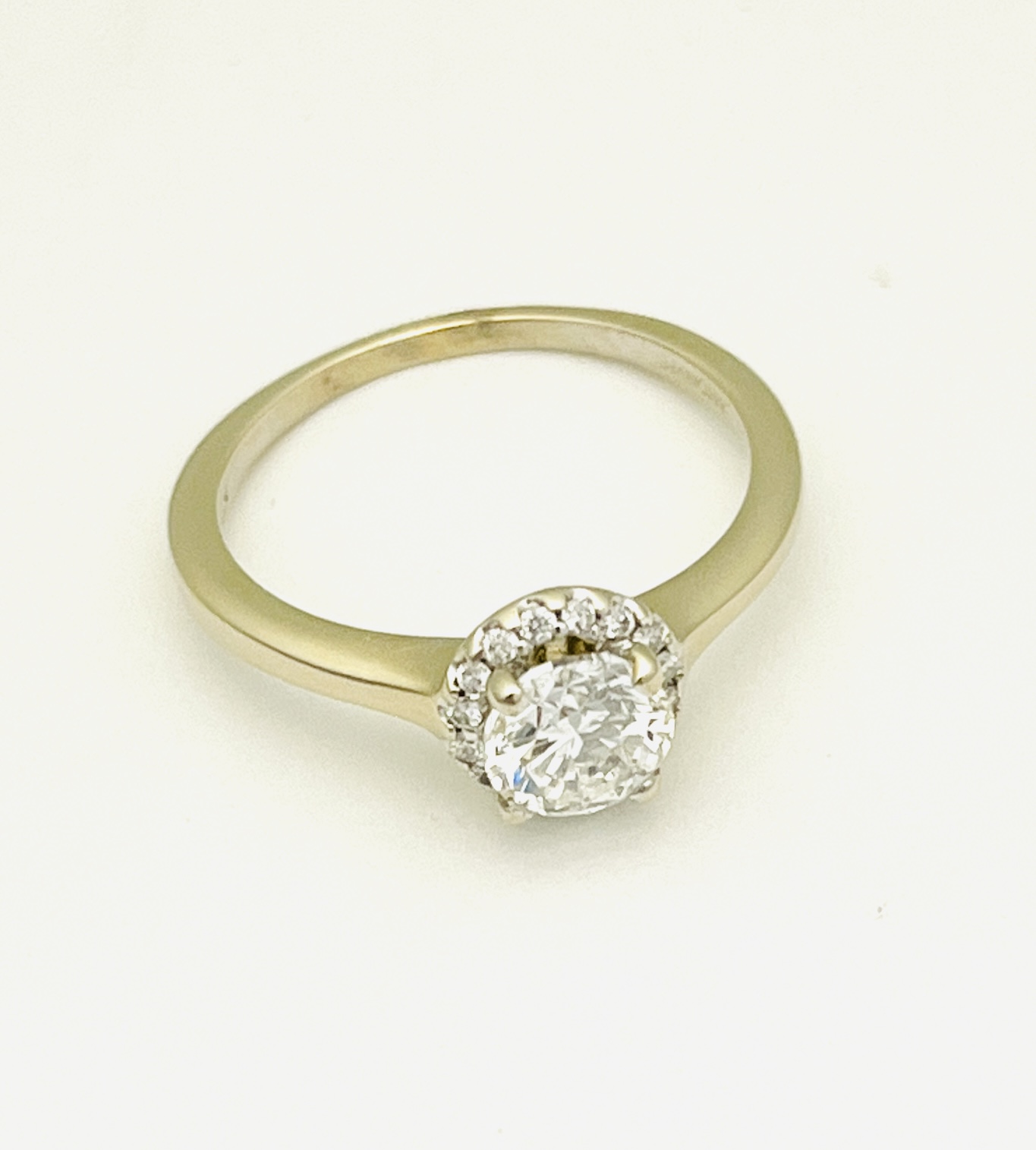 14kt White Gold Halo Ring with a 0.90ct Natural F-G color and VS clarity Diamond with Accents 0.20ctw Diamond Halo Size 7 3/4
