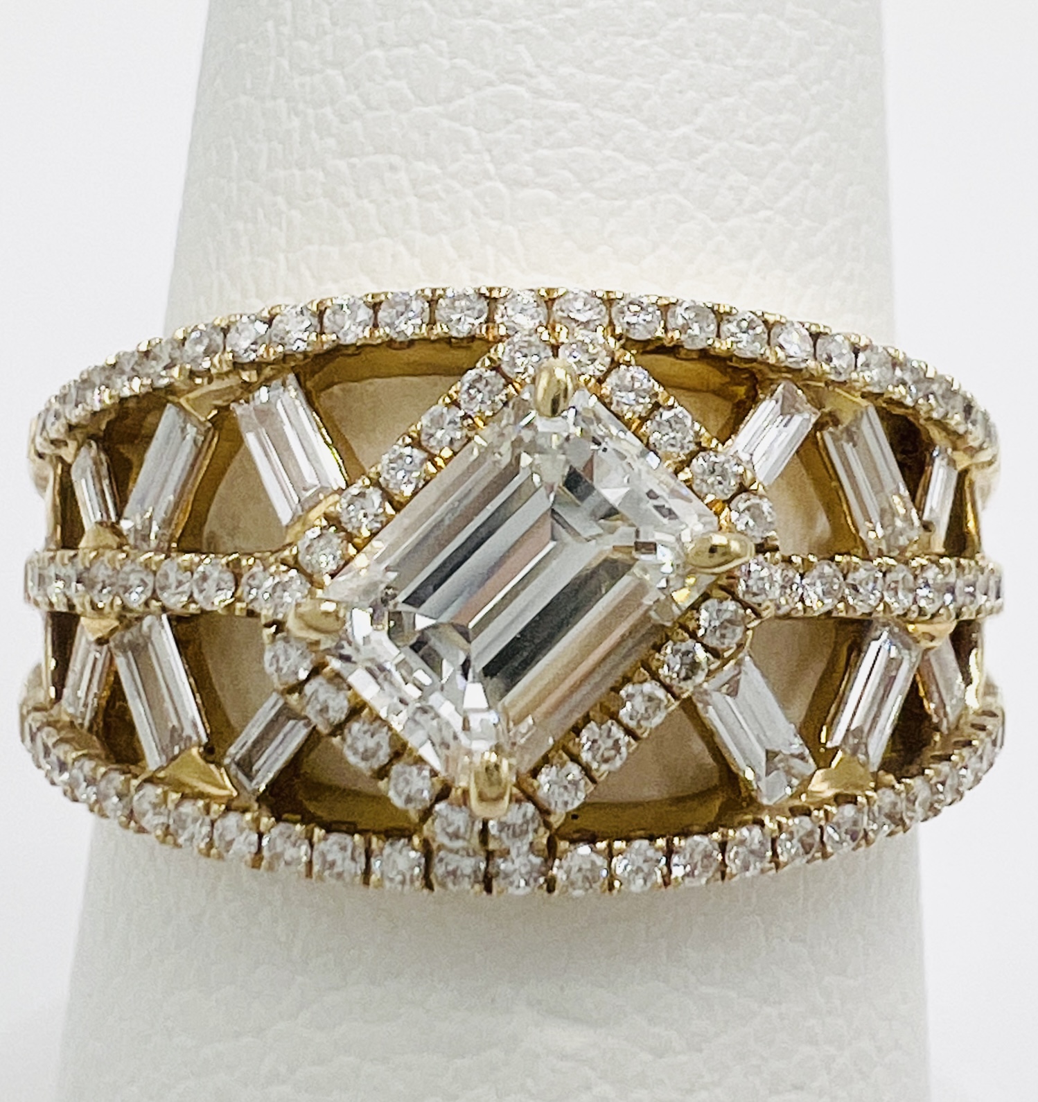Home / Gender / Womens / 14kt Yellow Diamond Tilted Emerald Cut Natural 0.83ct G Color VS2 Clarity and 1.51ctw Diamonds Negative Space Custom Ring 14kt Yellow Diamond Tilted Emerald Cut Natural 0.83ct G Color VS2 Clarity and 1.51ctw Diamonds Negative Space Custom Ring$15,000.00 1 in stock 14kt Yellow Diamond Tilted Emerald Cut Natural 0.83ct G Color VS2 Clarity and 1.51ctw Diamonds Negative Space Custom Ring quantity Add to cart SKU: 001-130-00045 Categories: Diamond Fashion Rings - Womens, Gender, Rings, Womens Related products Sterling Silver Multi-Colored Sapphire and Diamond Ring $810.00 Select options 18kt white gold “crown” ring semi mount $3,500.00 Select options Vintage 14kt Yellow Gold Diamond Fashion Ring Very Decorative Design $2,127.00 Select options Sterling Silver Mother-of-Pearl ring $180.00 Select options