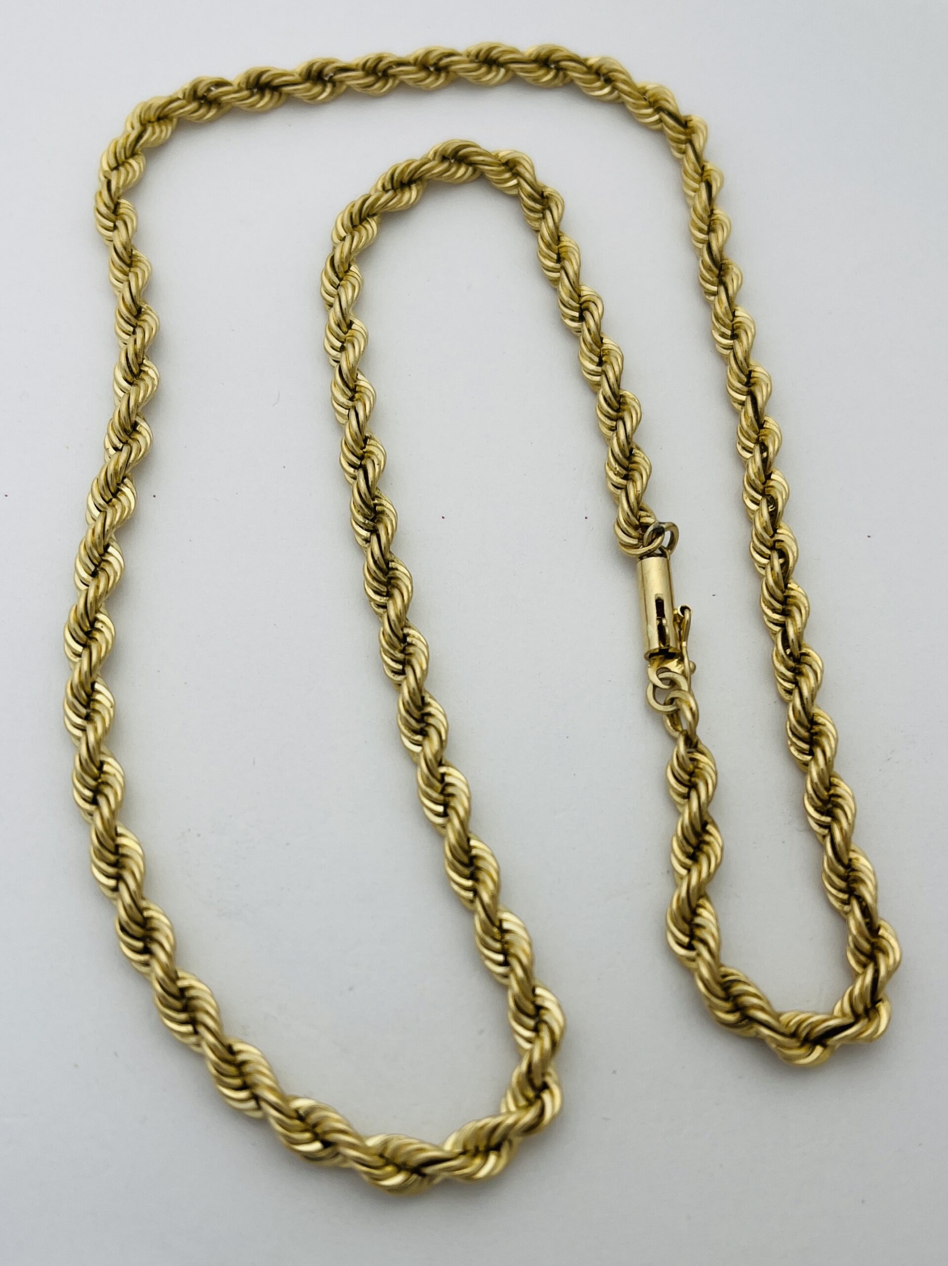 14kt yellow gold 4mm heavy rope necklace 18 inch long and weighing 27 grams