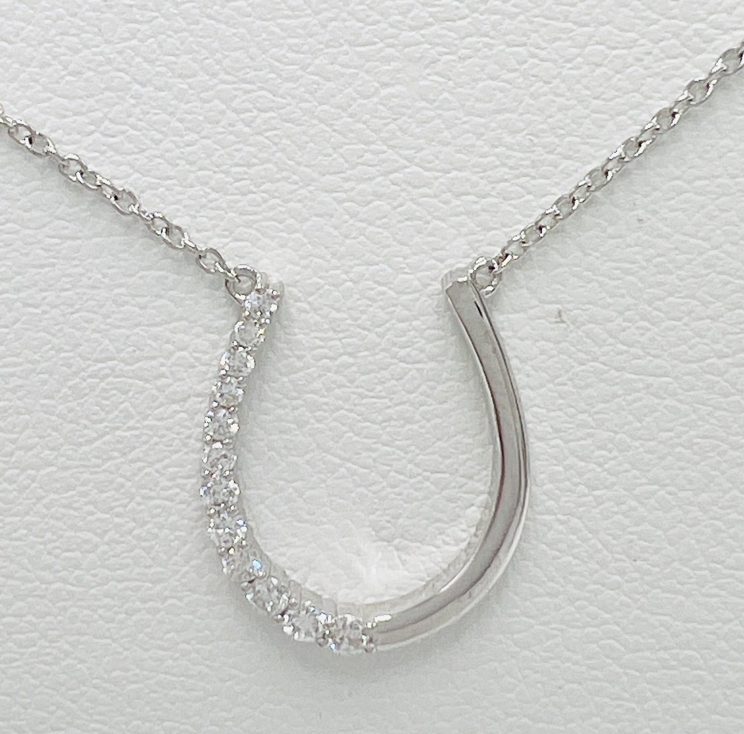 14kt White Gold Natural 0.18ctw Diamond Horseshoe Pendant