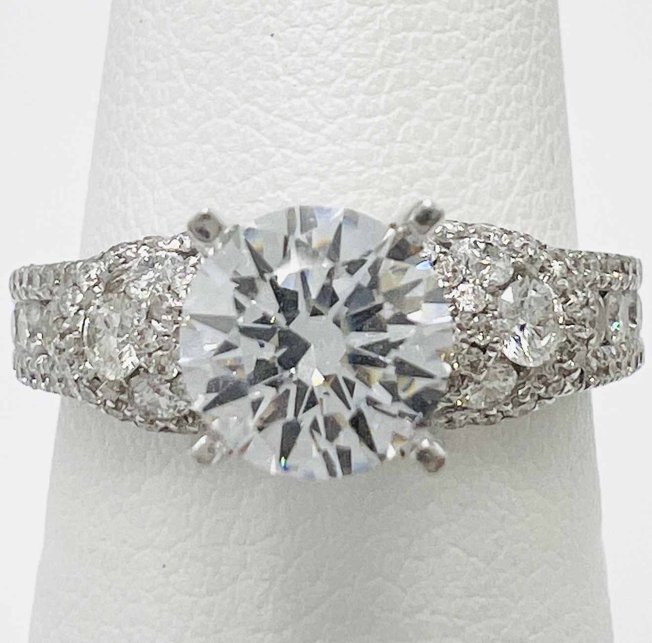 14kw 1.08ct F VS LAB Ctr, Natural Dia Accents 0.58cts Pave Engagement Ring