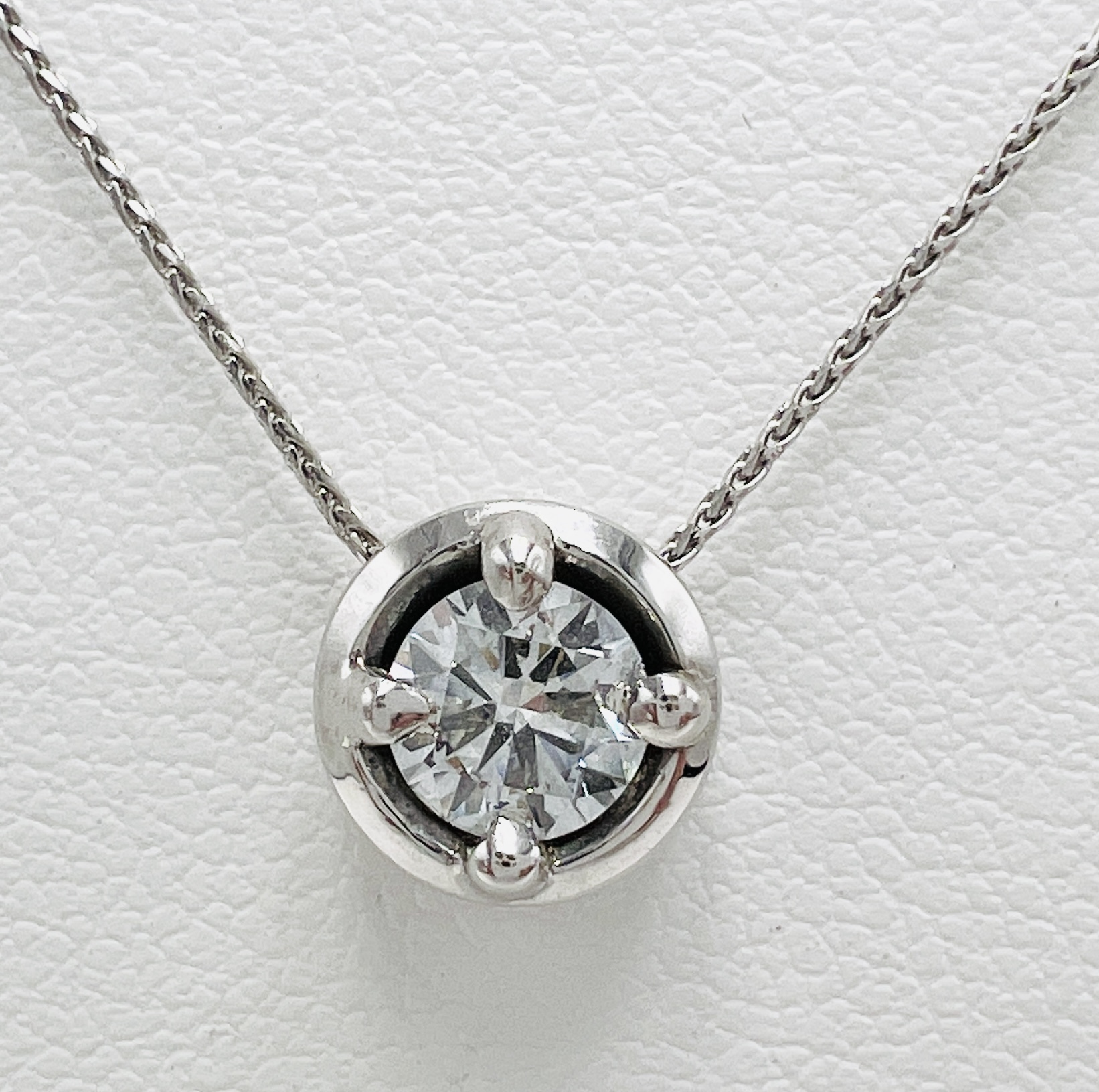 14K White Gold 0.50ct Lab Grown Diamond Bezel Solitaire Slide Pendant with chain