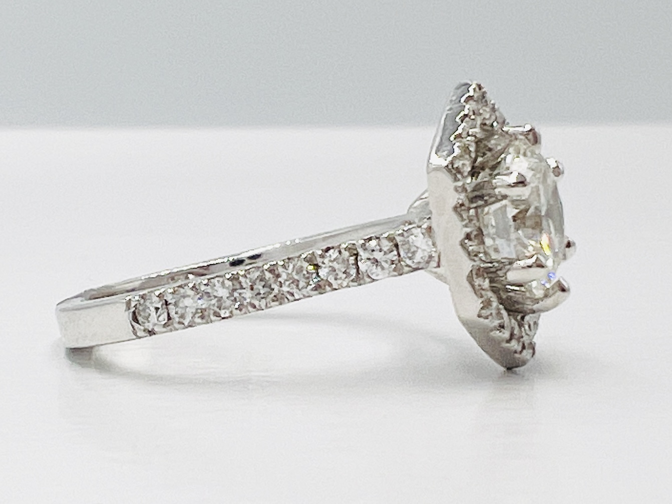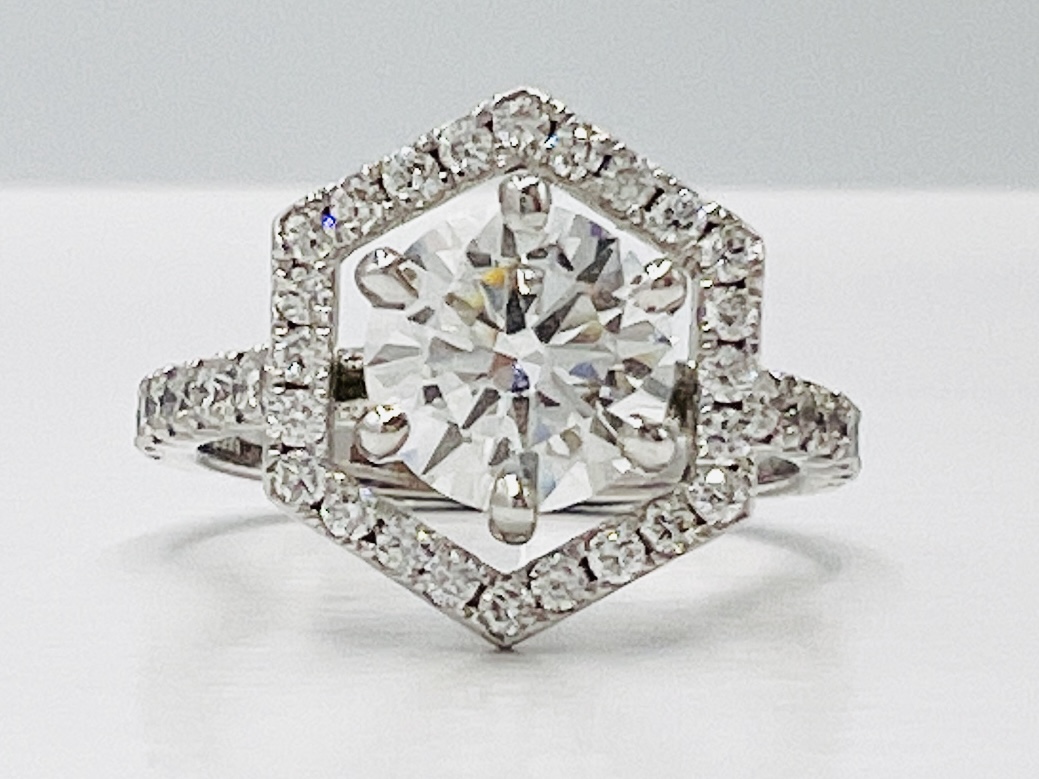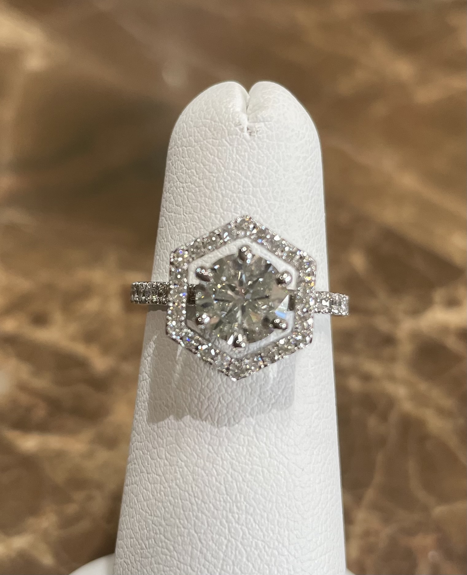 14KW 1.53ctw Hexagon Halo Dia ring w/ 1.03ct Lab Dia Center