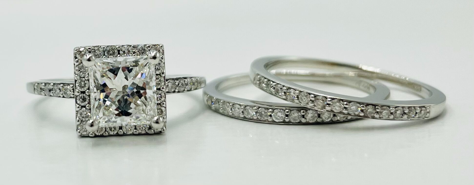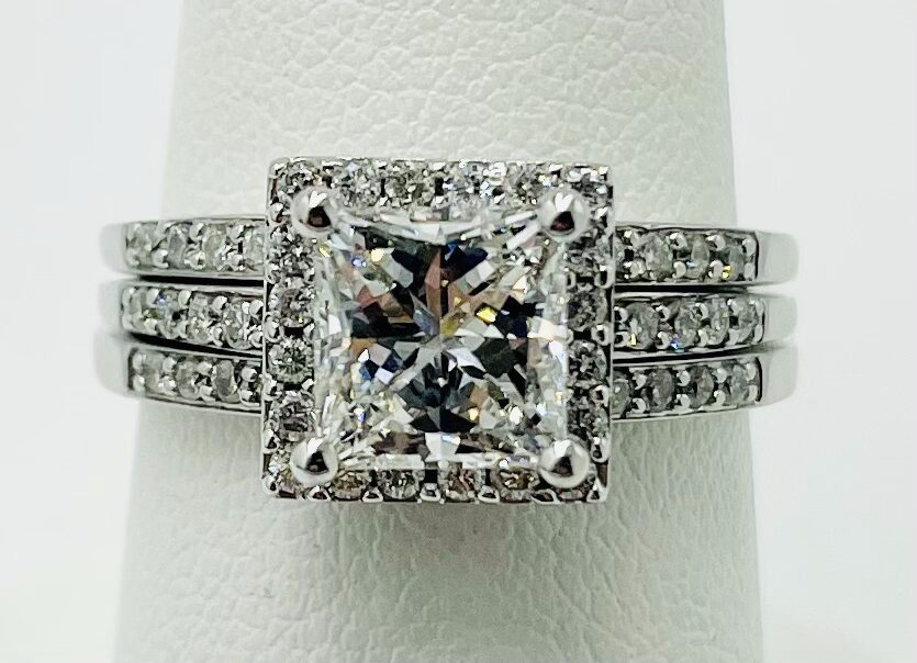 14kt White Gold Halo Ring with a Lab Grown Diamond center 1.91ct E VVS2 Quality Princess Cut Ring with Natural Diamonds Accents Wed Set sz 8.5 Certificate IGI#653451239