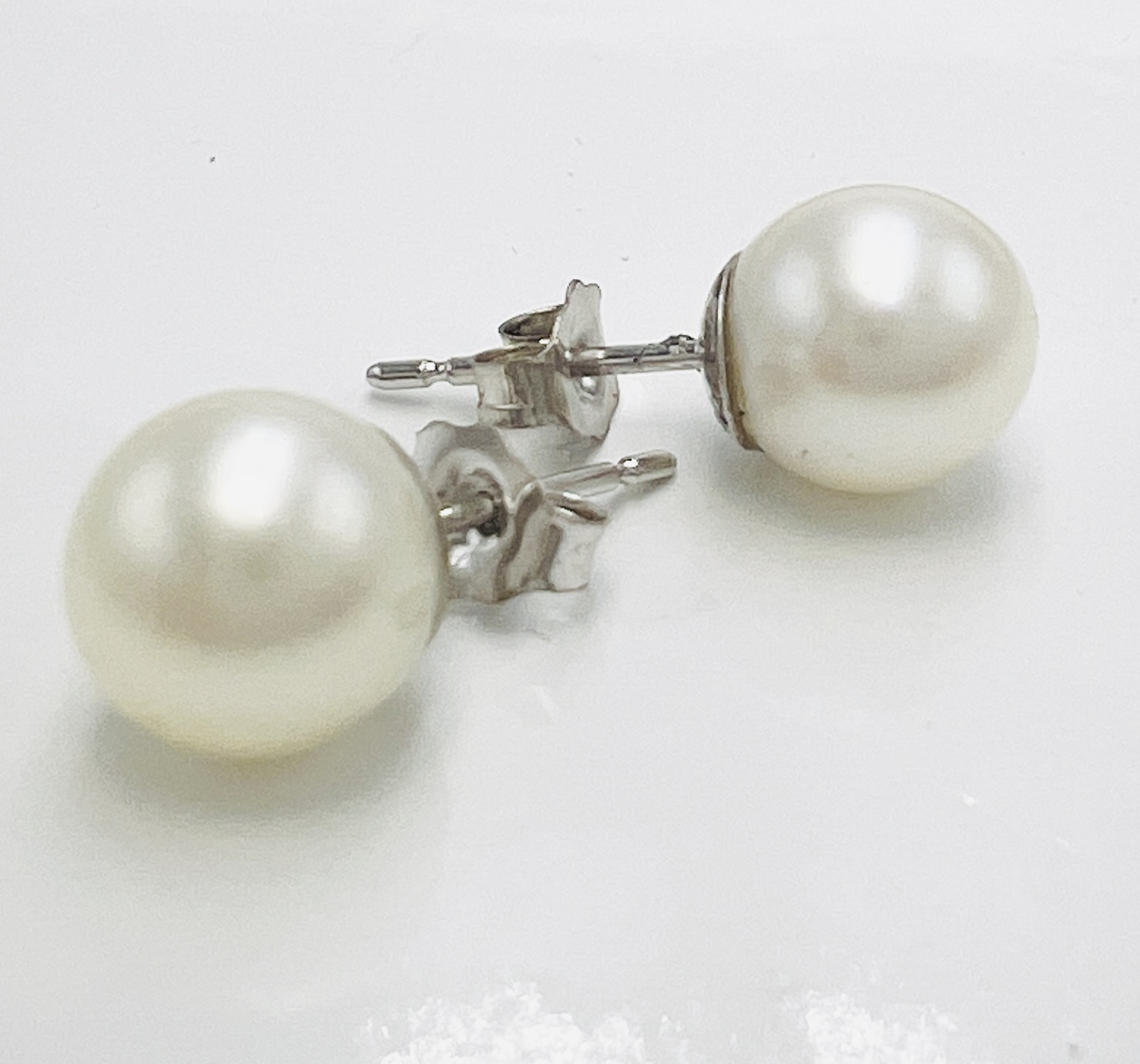 14k white gold 7.5mm White Freshwater AA Pearl Earring Studs