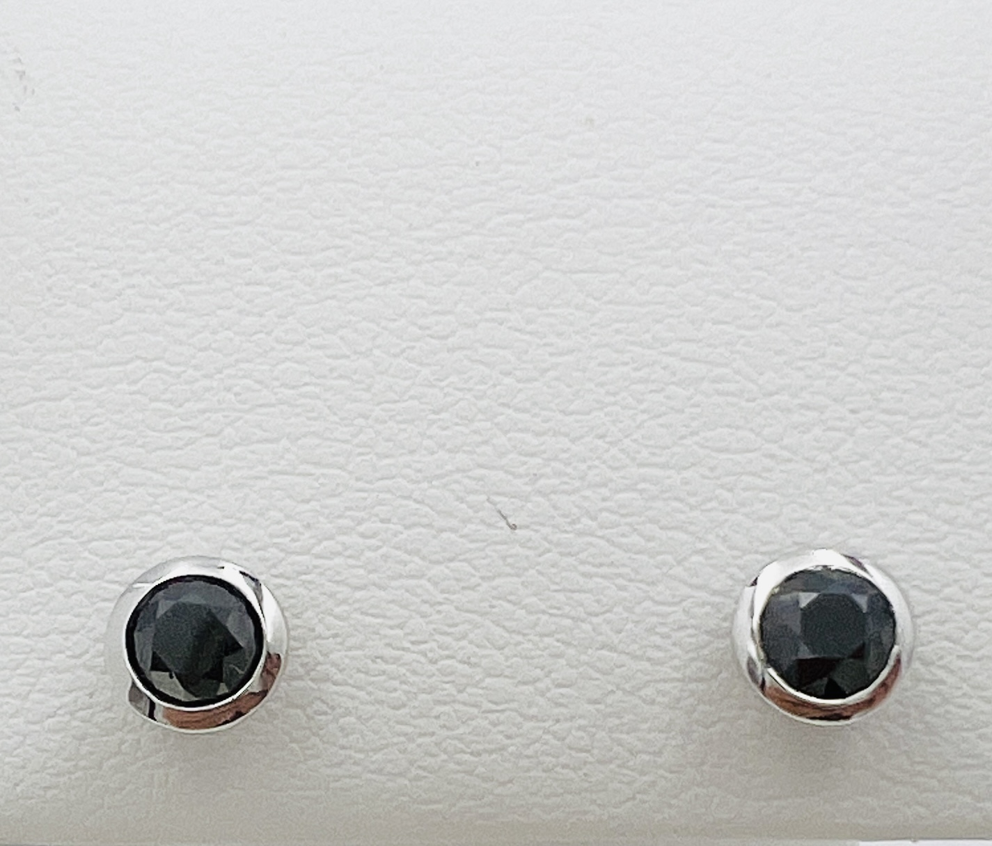 14KT White Gold 3.7mm Black Diamond Bezel Studs 0.50ctw