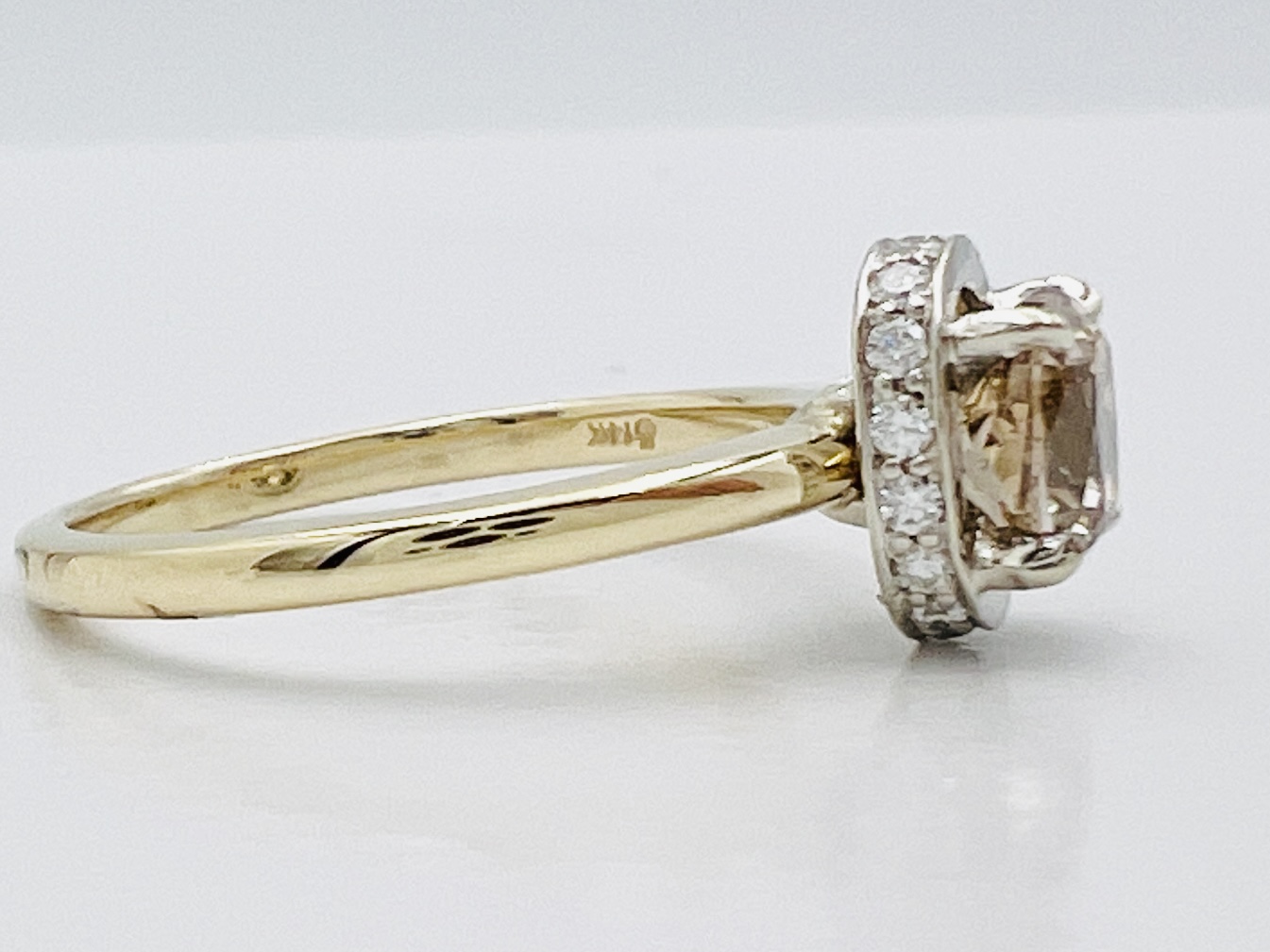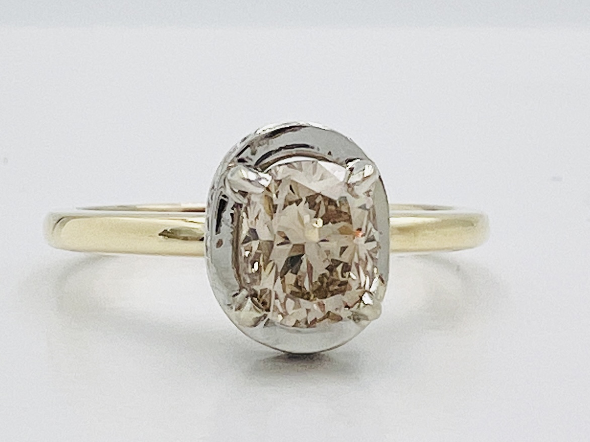 14Kt Yellow Gold CustomRing with a1.04ct Natural Brown Yellow Diamond andn Hidden Halo 0.20 ctsw in a Size 6