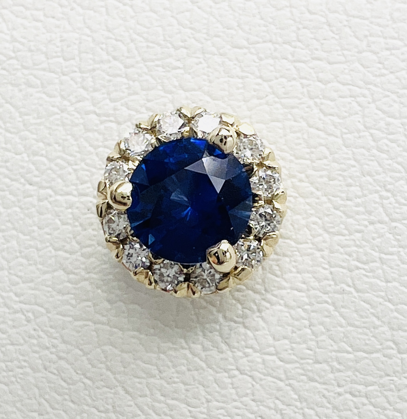 14KY 1.04cts 5mm Ceylon Blue Sapphire Studs w/ 0.20cts Natural Diamond Halo Friction Back Studs