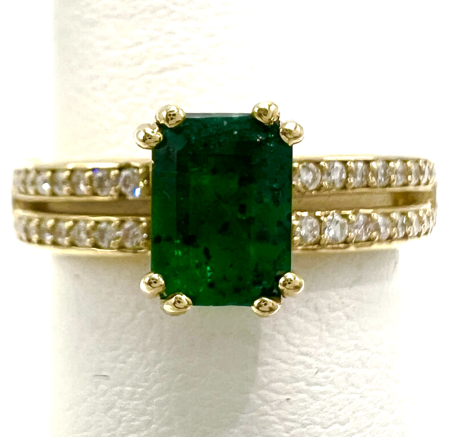 14kt yellow gold 1.10ct Natural Columbian Emerald 0.25ctw Natural Diamond Accents Ring