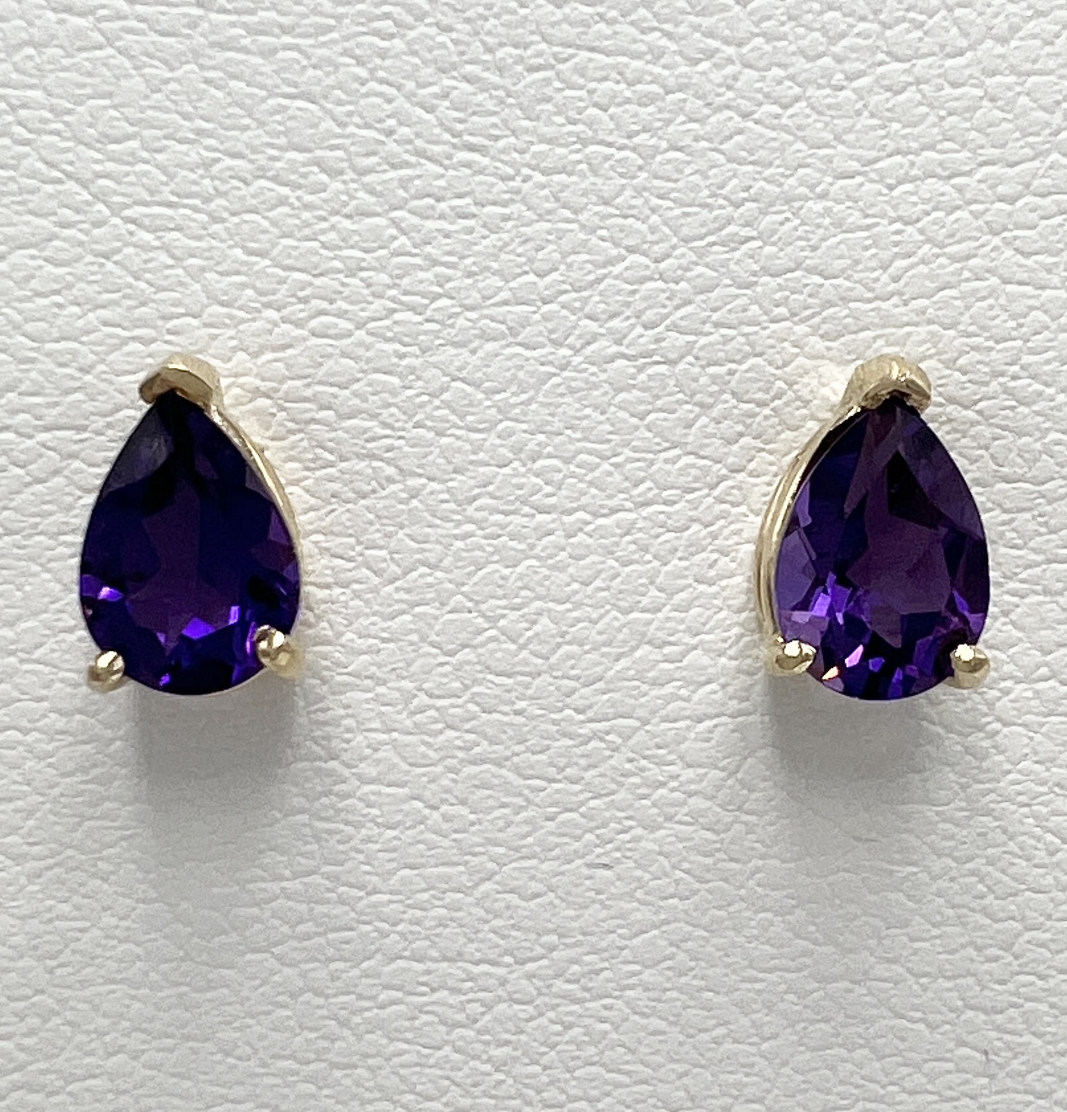 14kt yellow gold AAA Pear-Shape Amethyst Studs 2ctw