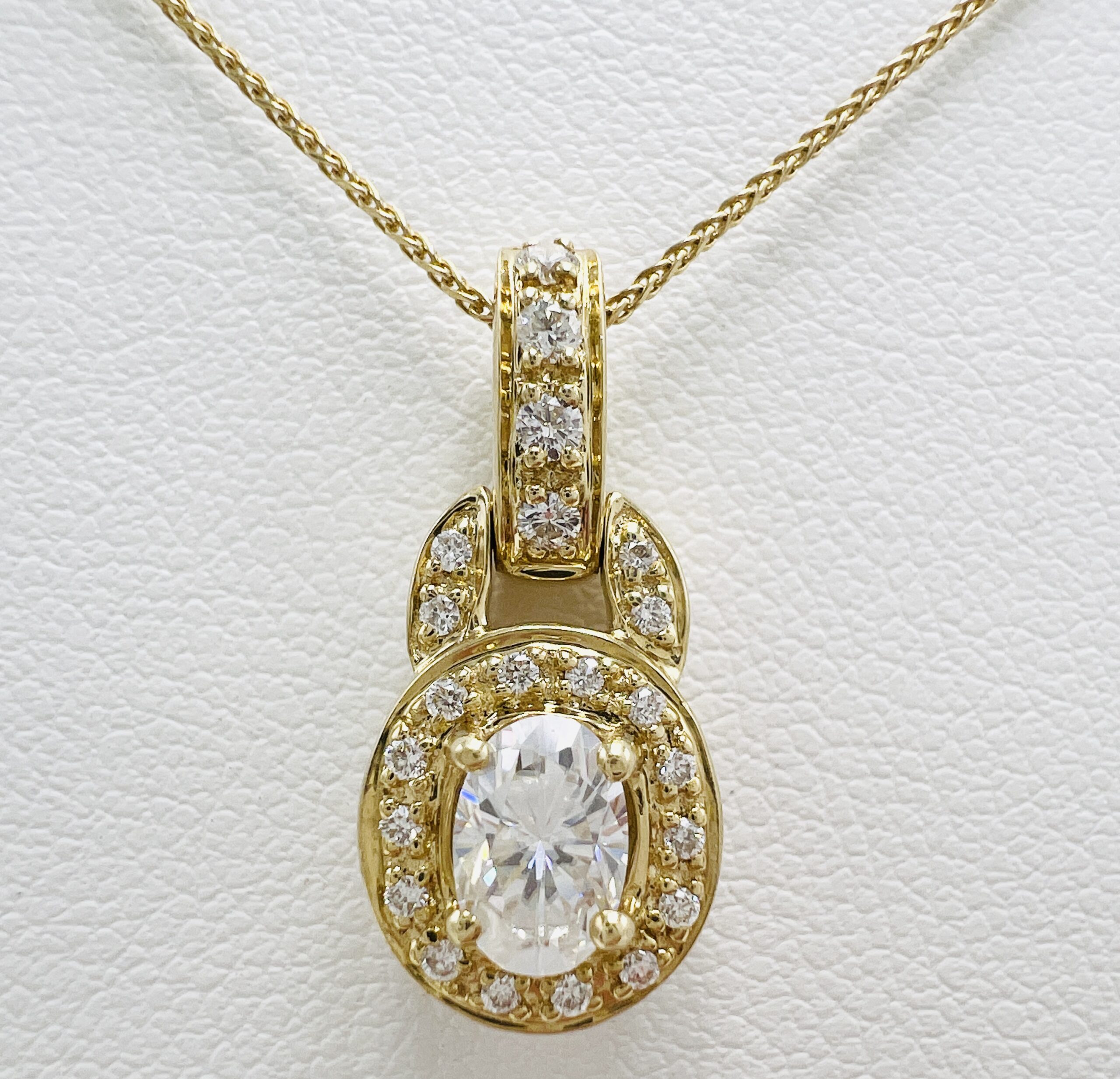 14KY Diamond and 0.20cts with oval Moissanite 0.50ct Pendant Necklace and gold chain