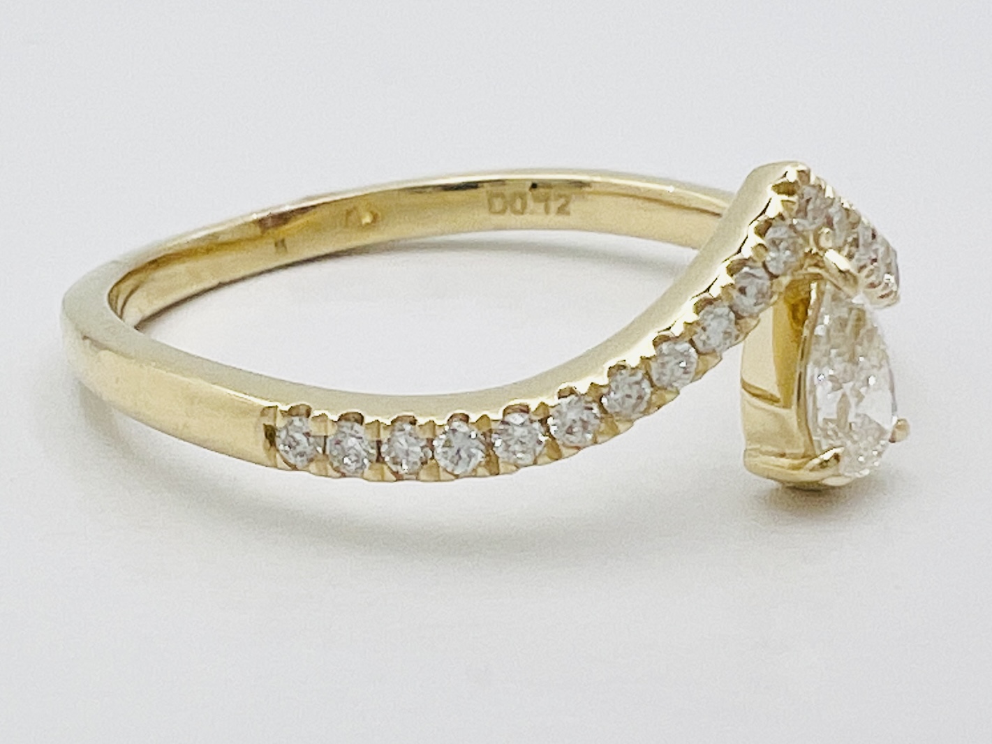 14kt Yellow Gold Natural Pear 0.22 cts Diamond and Rounds 0.20 cts Curved Fashion Band