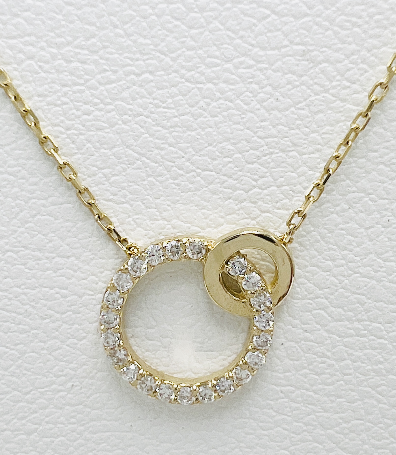 14K Yellow Gold 0.22ctw Diamond Double Circle Stationary Necklace 18″ Cable Chain Adjustable for 16″