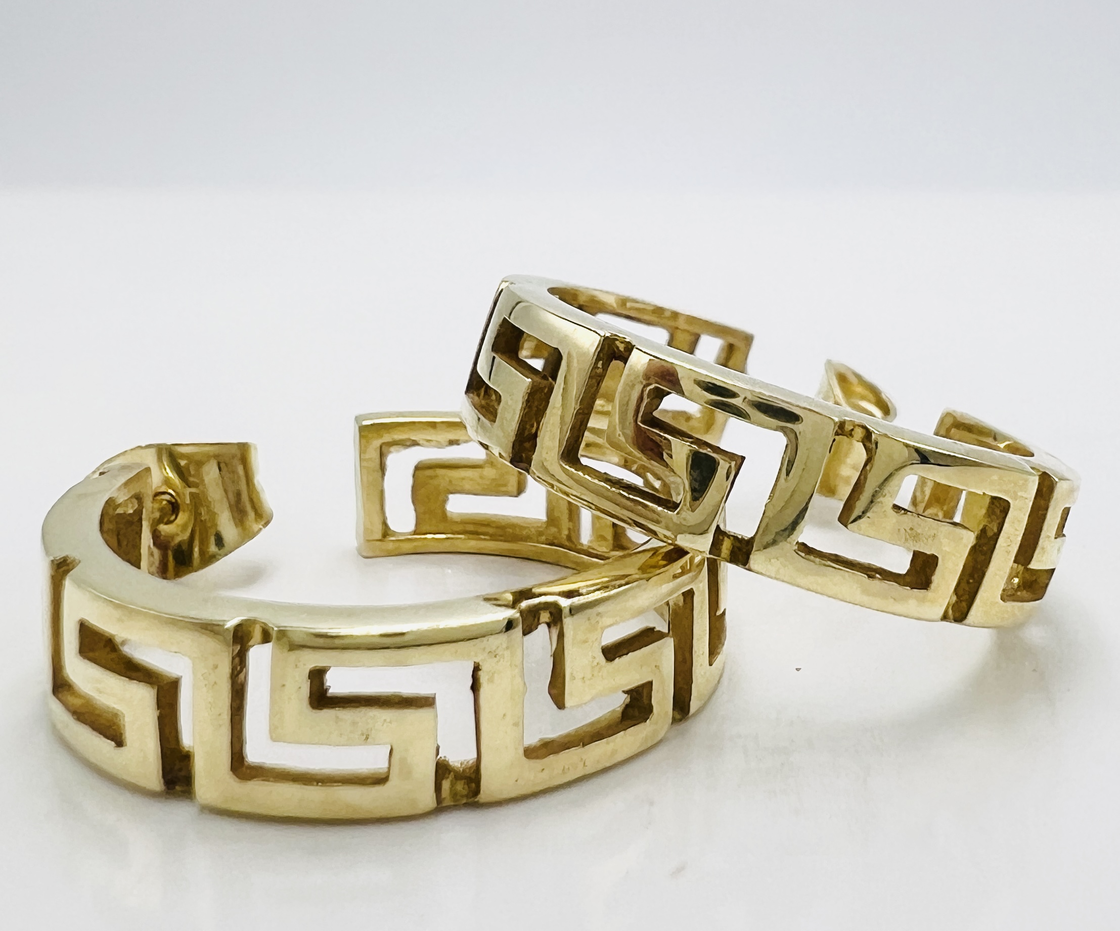 14kt yellow gold Greek Key Fashion Hoop Earrings 6.7g
