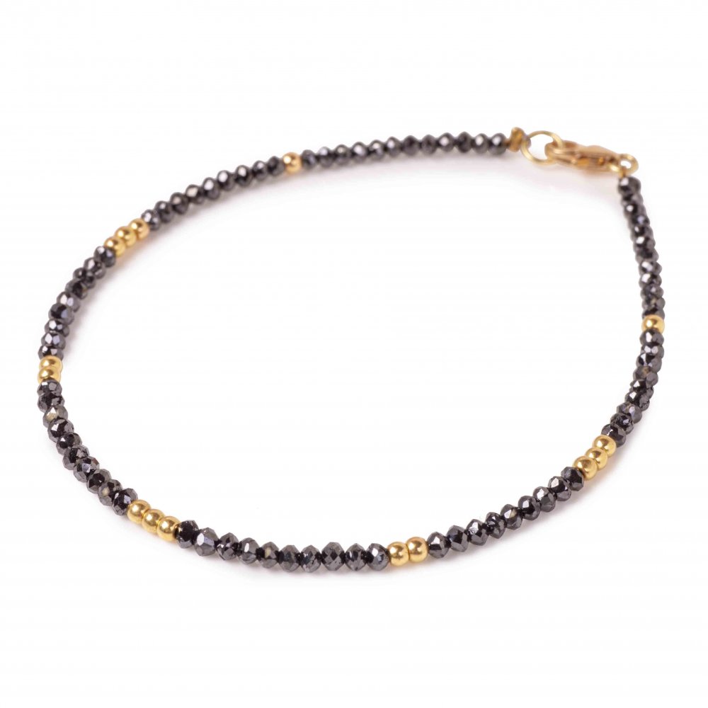 18K Yellow Gold 7.43ctw Black Diamond Bead Bracelet with Gold Bead Accents