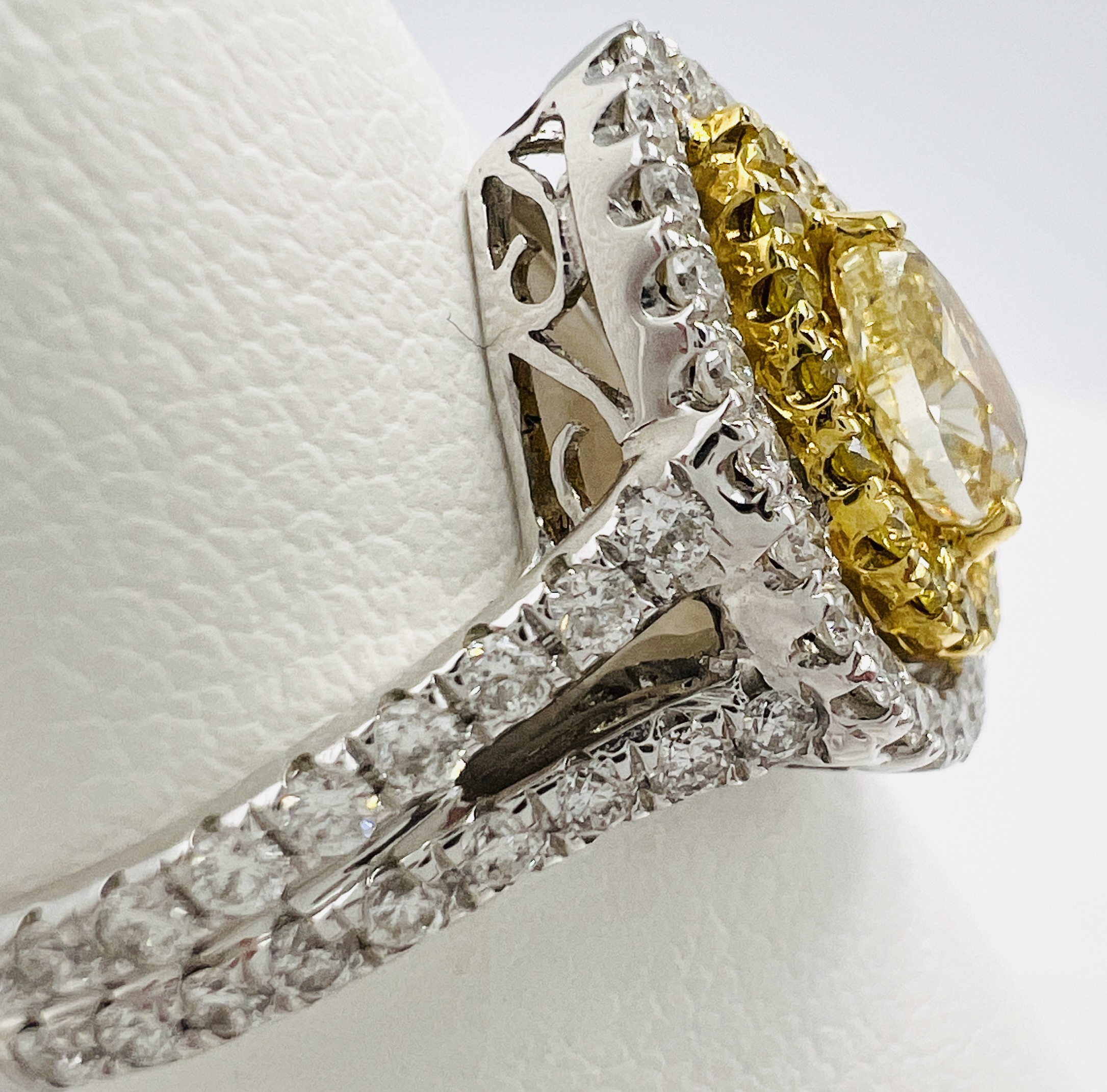 18k white Gold Custom 0.62ct Pear Fancy Canary Natural with Yellow Diamonds 0.15ct Yellow Halo, White Diamond 0.66ct – 5.10gms