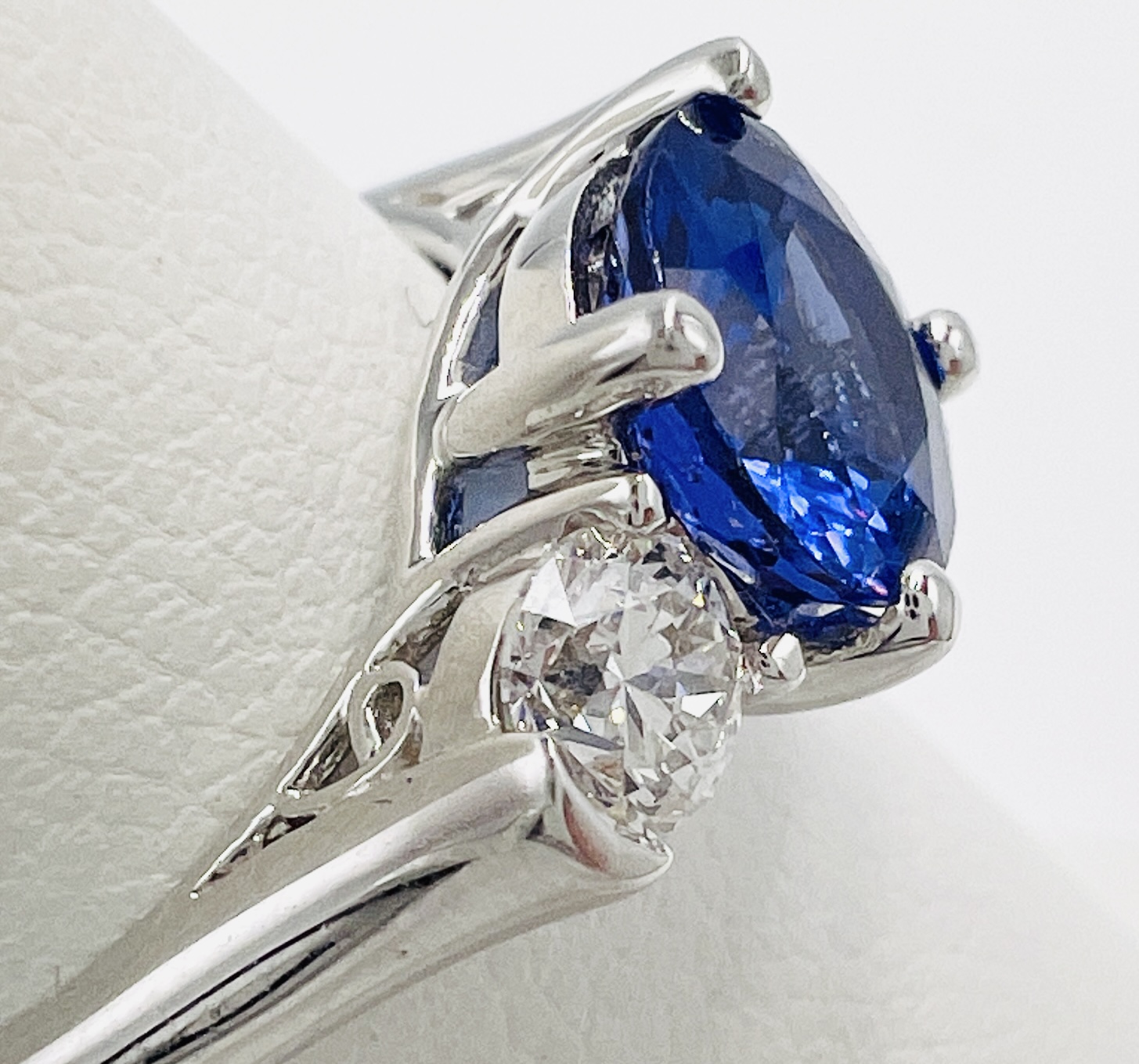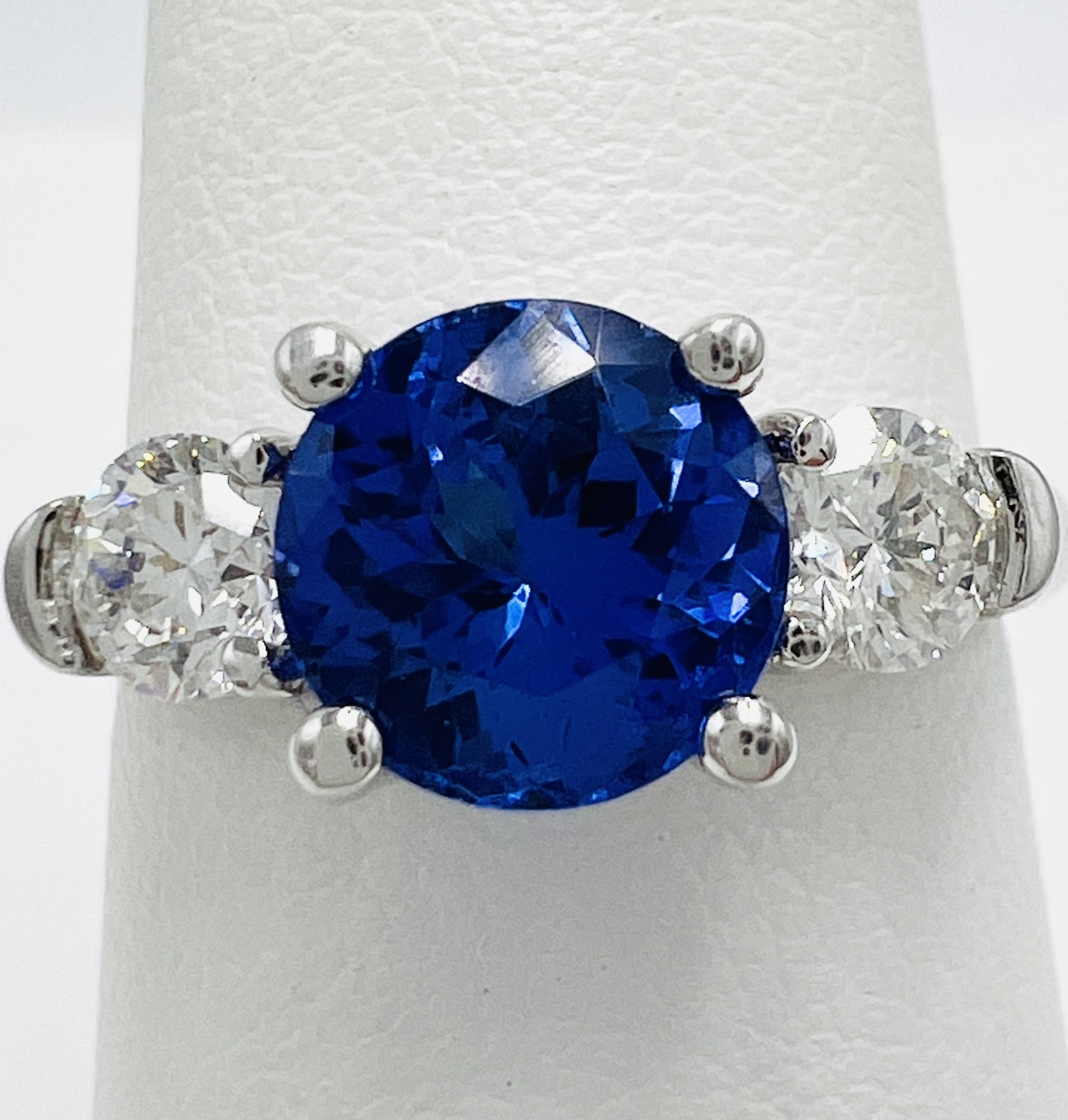 18kt White Gold Round Brilliant 1.51ct Tanzanite and 0.48ct Diamond Fashion 3-stone Ring