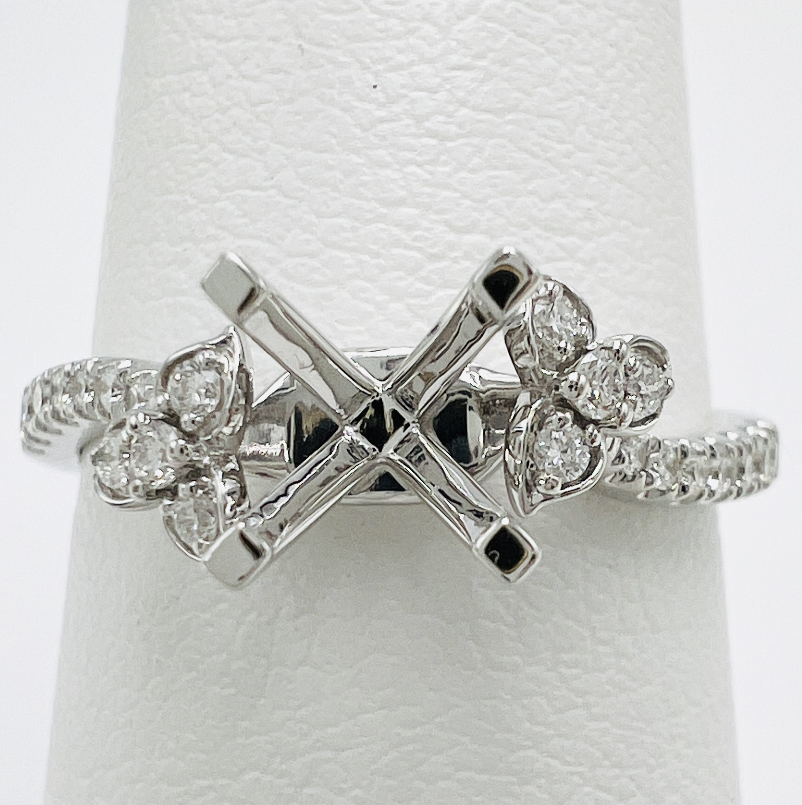 18kt White Gold Accented Wave Semi Mount for 1ct Round Accents Total Natural Diamonds 0.16ctw