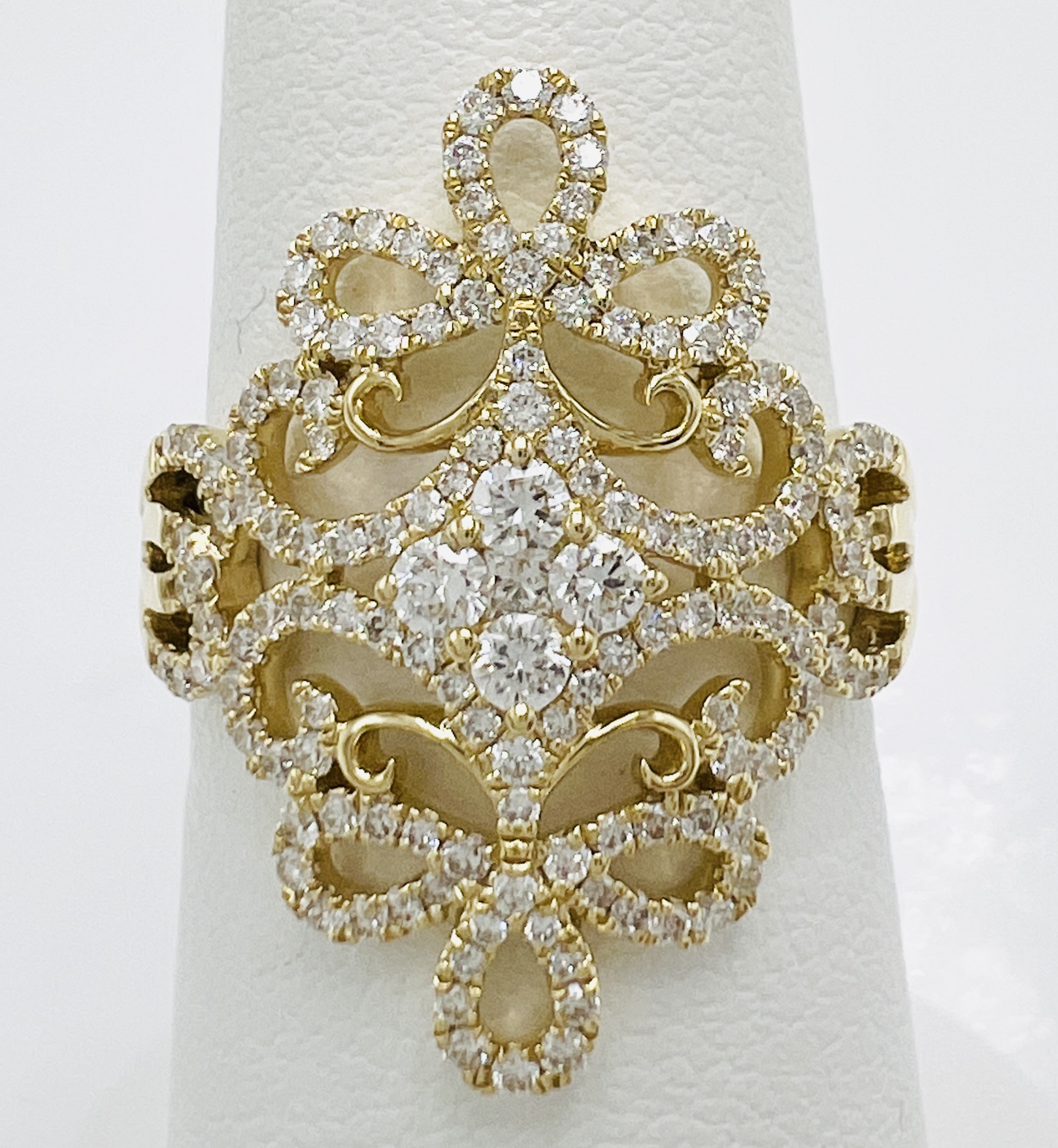 18KY 0.69ctw Swirl Diamond Fashion Ring