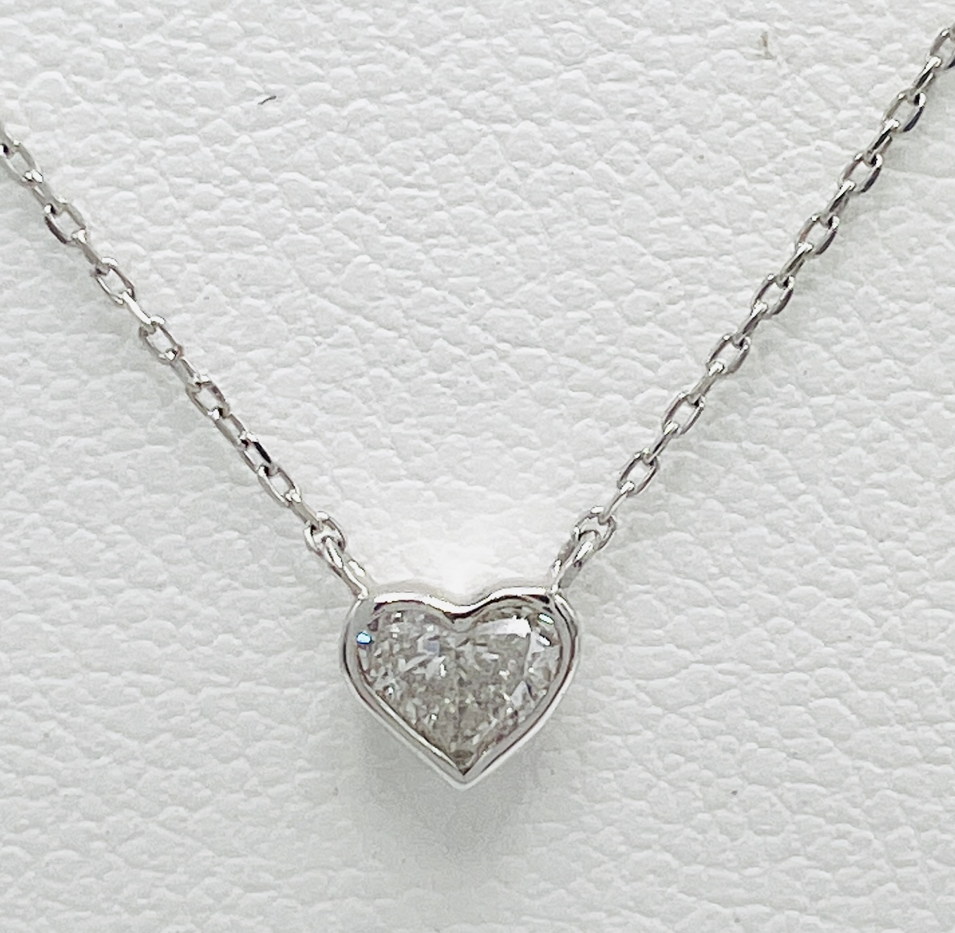 14kt White Gold Bezel Natural Heart 0.25ct Solitare Diamond Pave Necklace and chain