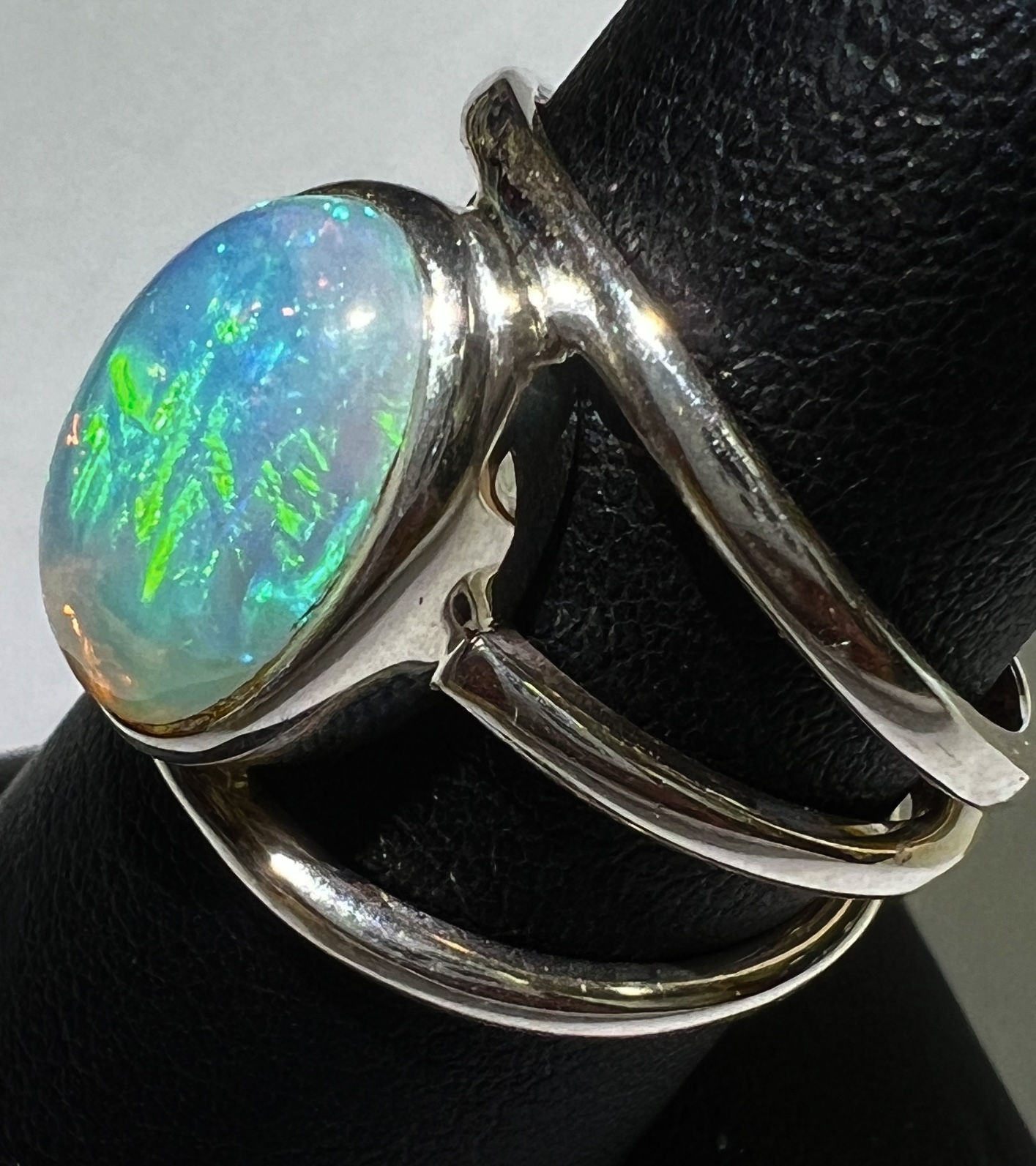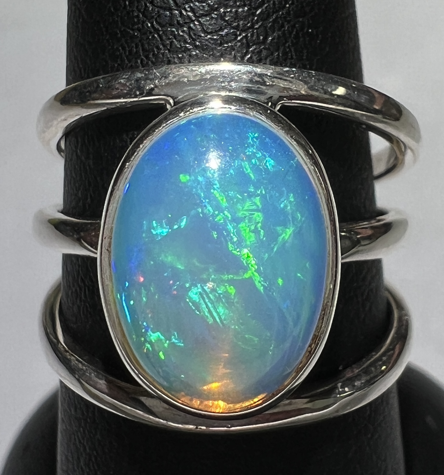 Cushion Cut Ethiopian Opal Silver Ring Size7
