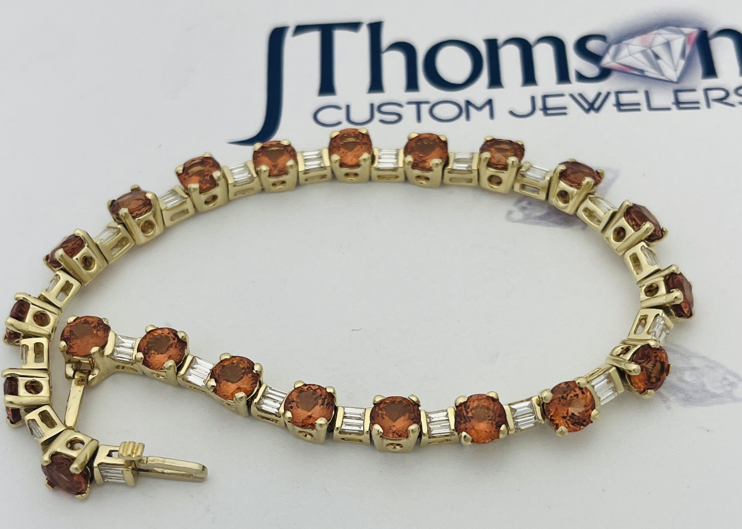 14kt Citrine and Natural Diamond Bracelet, 10 carats of 5mm Citrine and 1.5 carats Diamonds GH VS Bright Orange-pink 16.7grams Estate