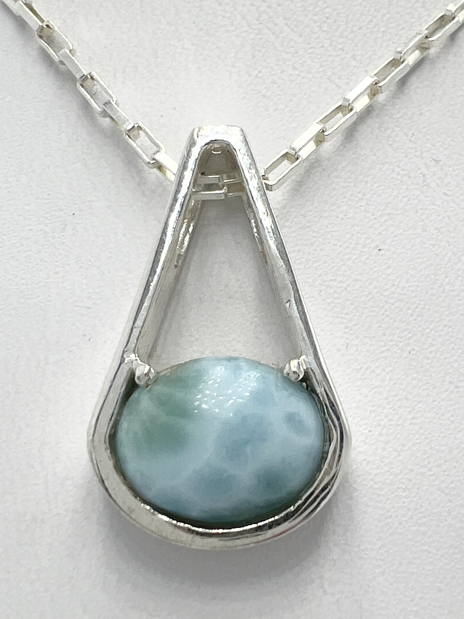 Oval Larimar from Dominican Republic Pendant 20″ Link chain