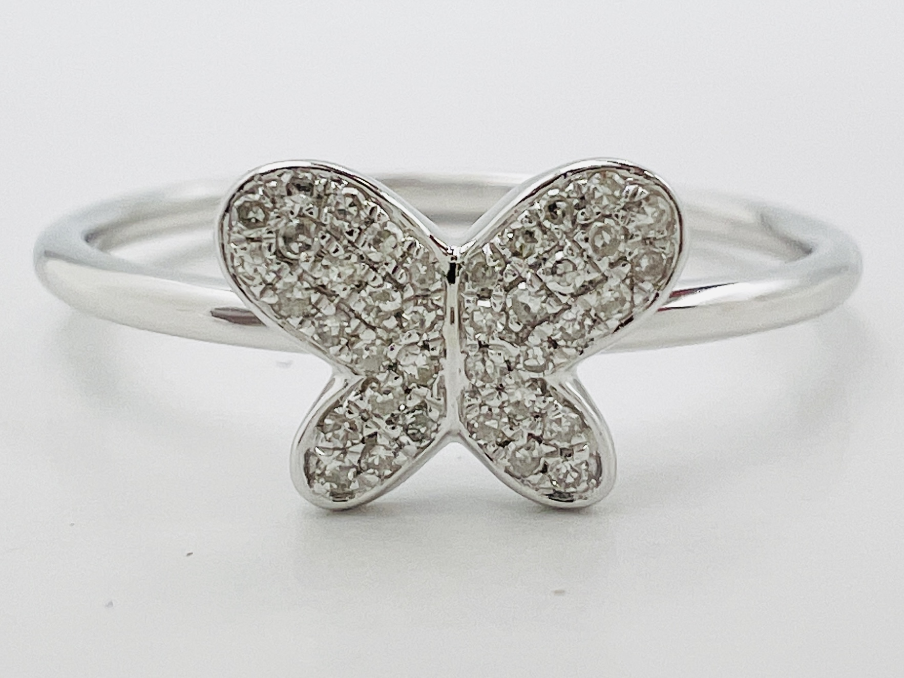 14KT White Gold Pave 0.10ctw Diamond Butterfly Ring Size 7