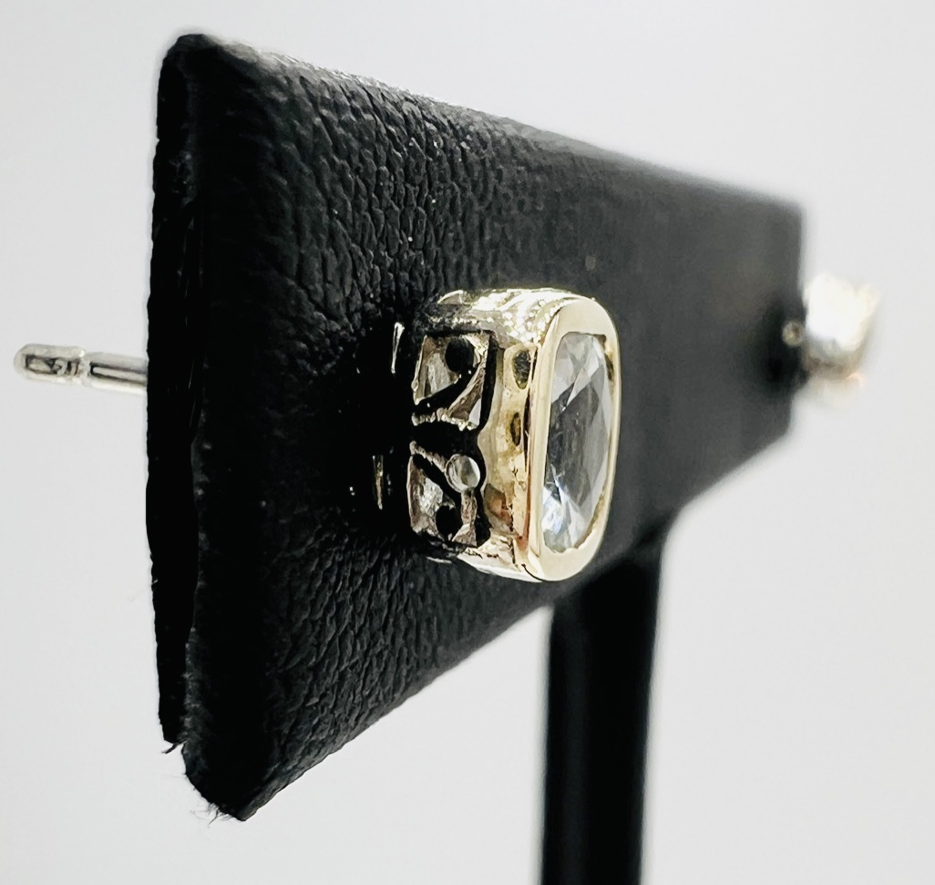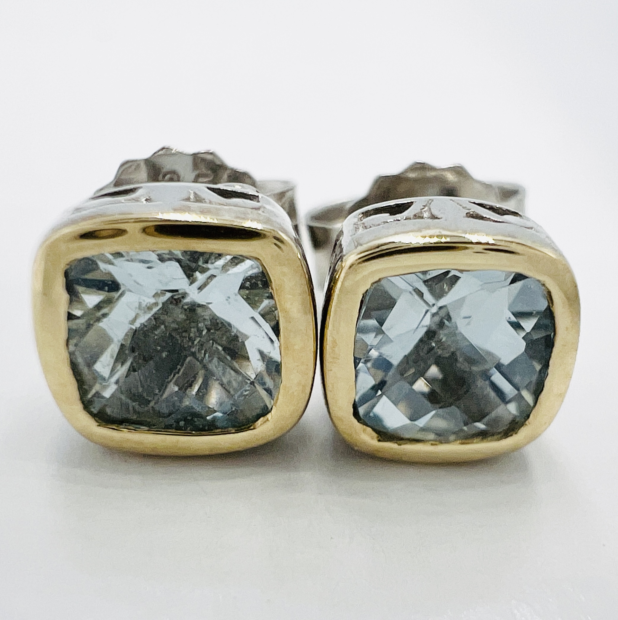 Sterling Silver and 14k Gold Checkerboard-cut Natural Aquamarine Stud Earrings