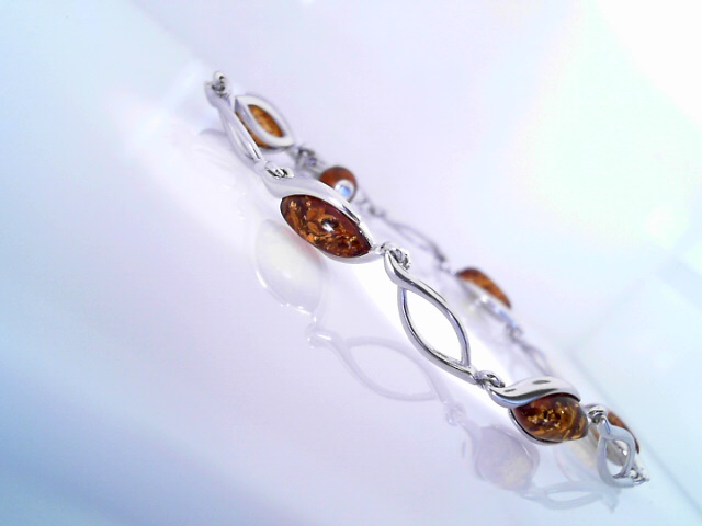 Sterling Silver Baltic Amber Cognac Color Marquise Bracelet