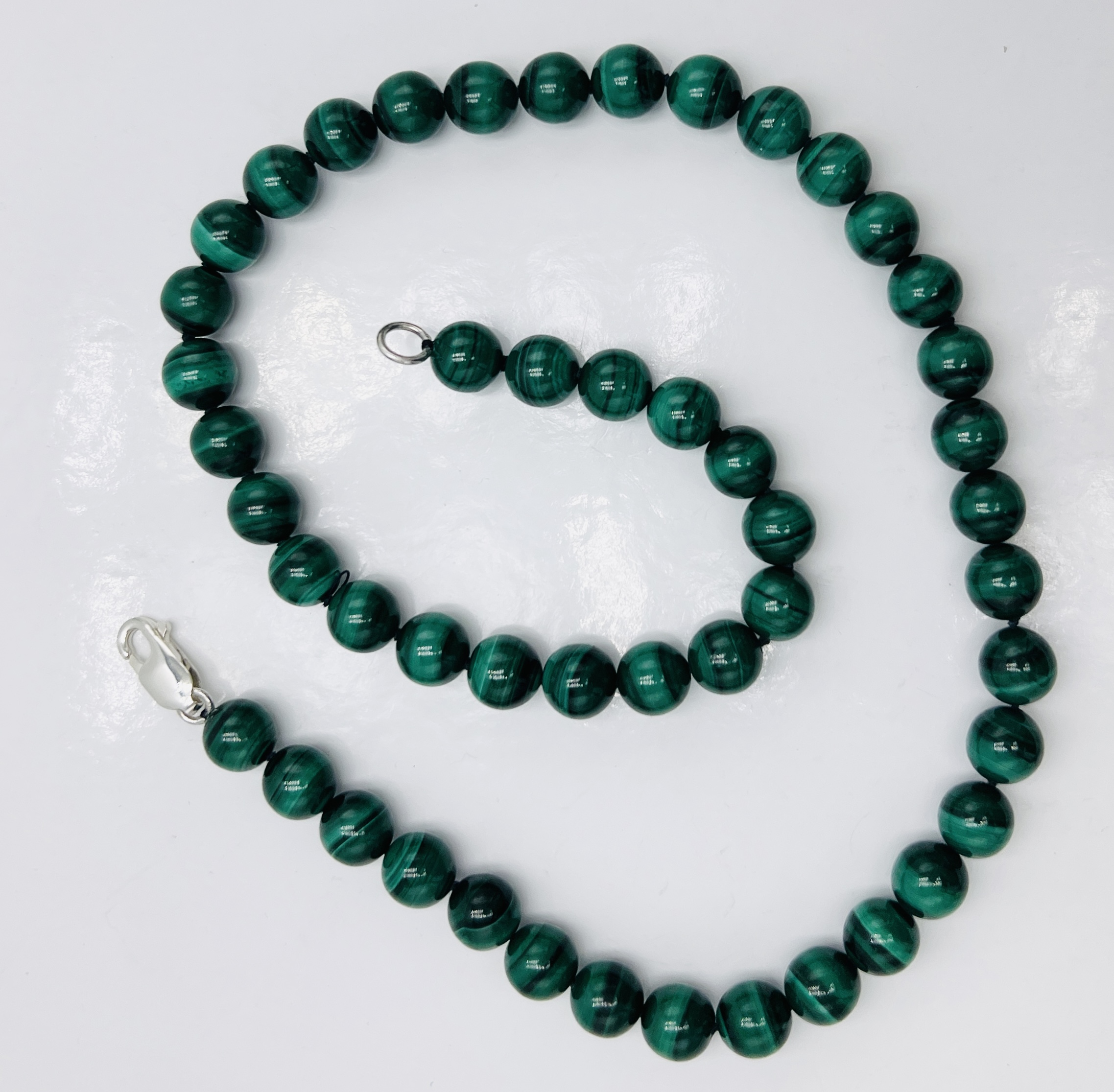 Sterling Silver Clasp 17″ 8mm Malachite Bead Necklace
