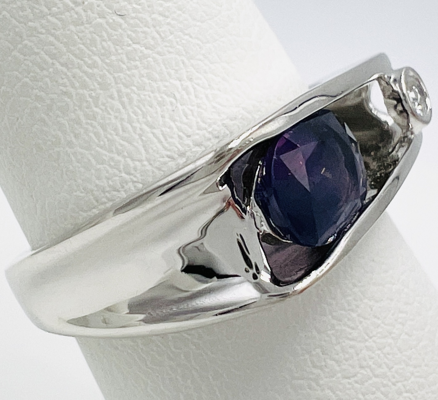 Sterling Silver Oval Purple Sapphire East-West Ring w/ White Sapphire Accent