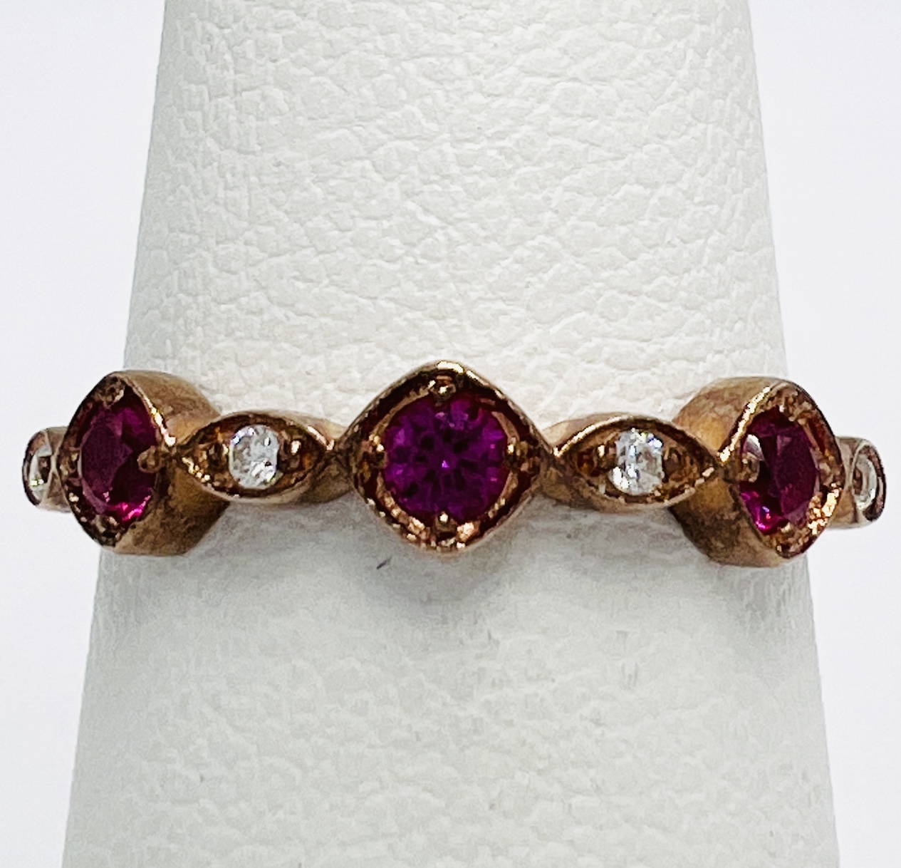 Sterling Silver Rose Gold Plated Lab Created Ruby and CZ Band Size 6