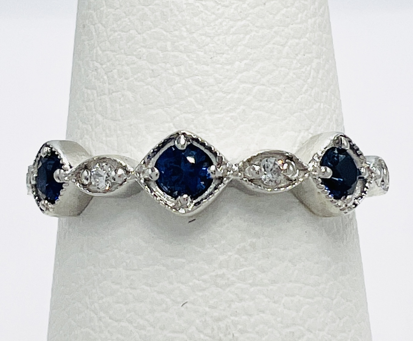Sterling Silver Simulated Sapphire Stackable Band Size 5