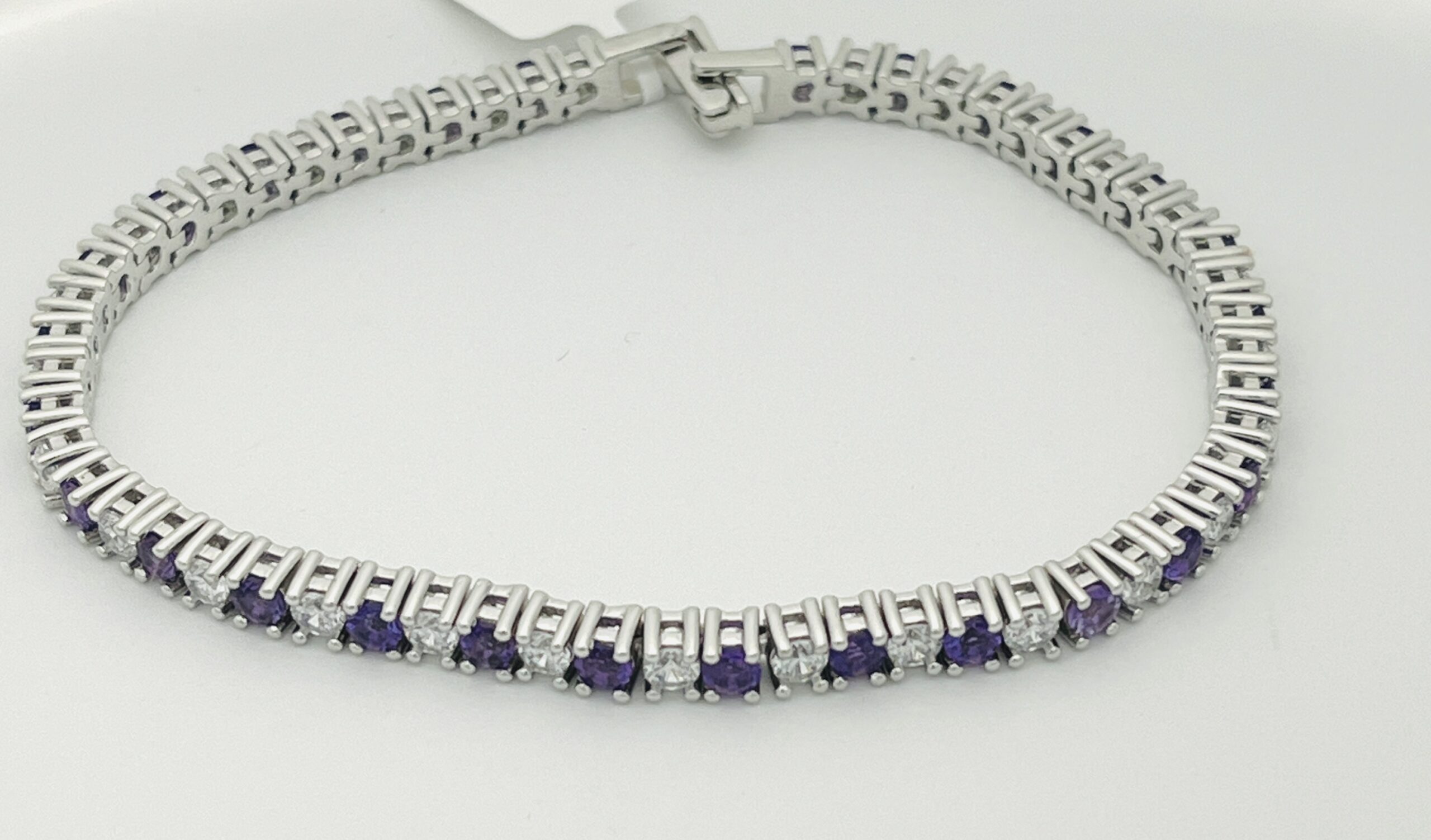 Sterling Silver 3ct Amethyst and Cubic Zirconia Bracelet