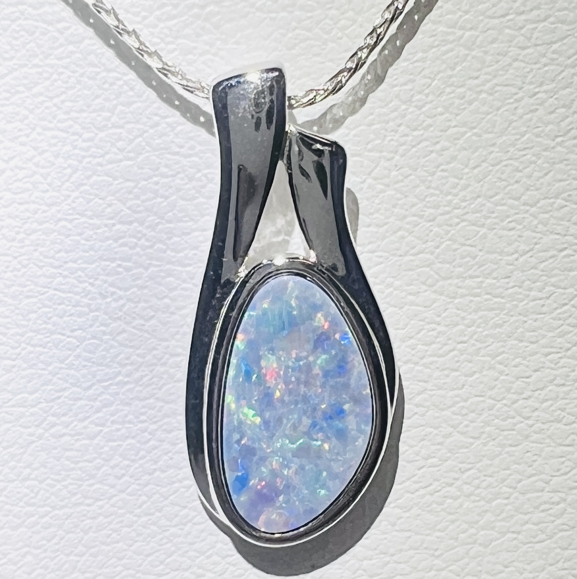 Sterling Silver Australian Opal Black Doublet Multicolored AA and18″ Chain Pendant