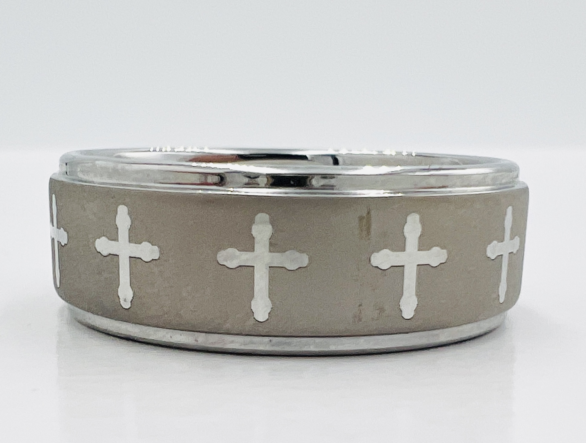 Tungsten Carbide Engraved Crosses and Sand Blast Finish Thorsten TRINITY W283 (Not Sizable Made to Order in Size 2 weeks )