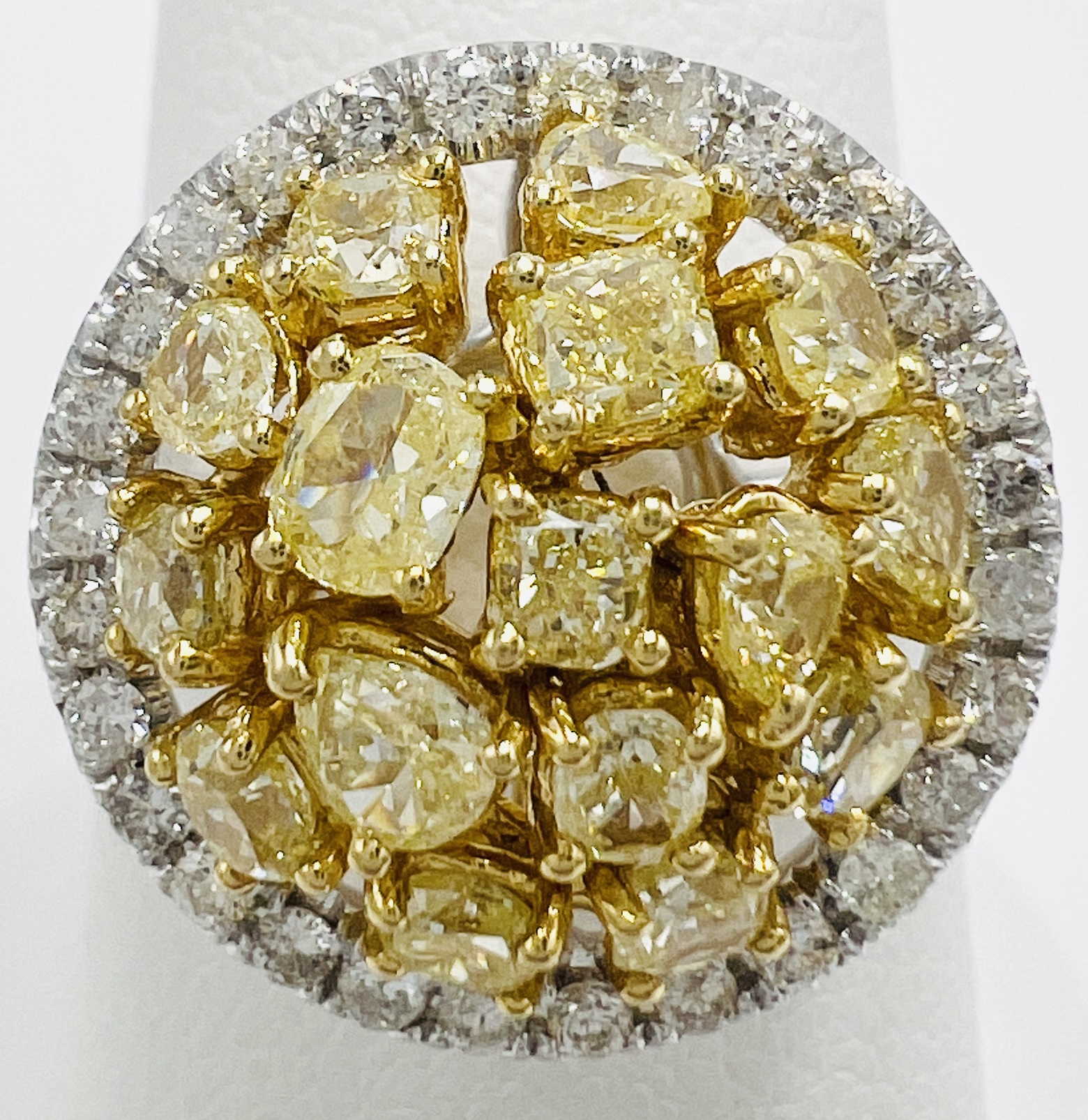 Two Tone 14kt Gold with Cluster of Natural Yellow Diamonds and White Halo Total 1.93ctw Diamond