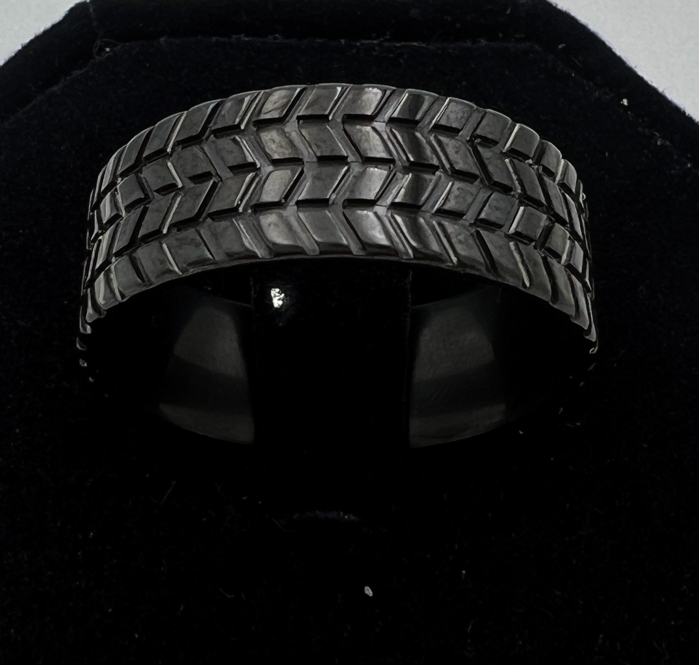 Zirconium Textured “Tire tread” Ring 8mm Size 10
